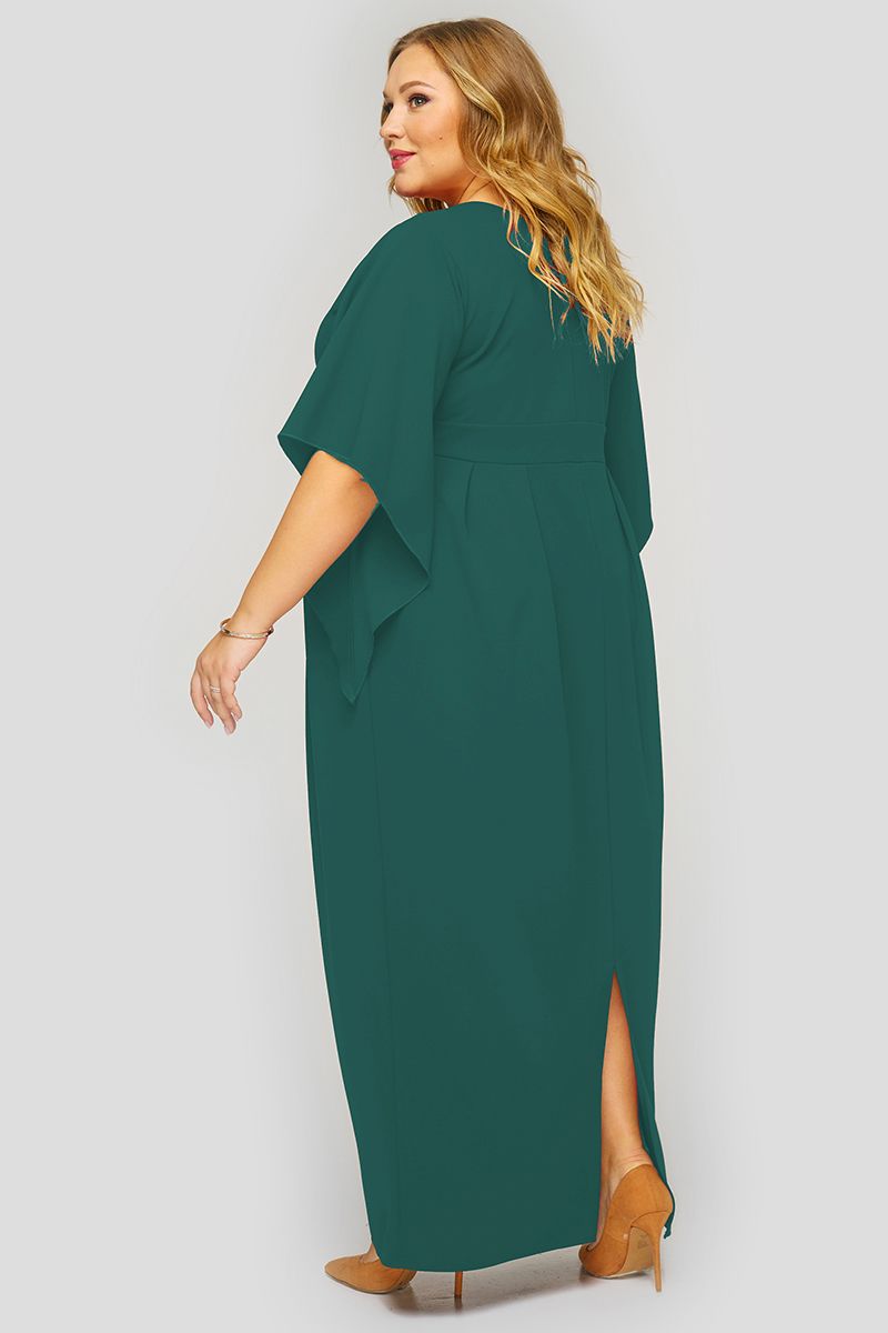 Платье вечернее из изумрудного крепа с пришивным украшением