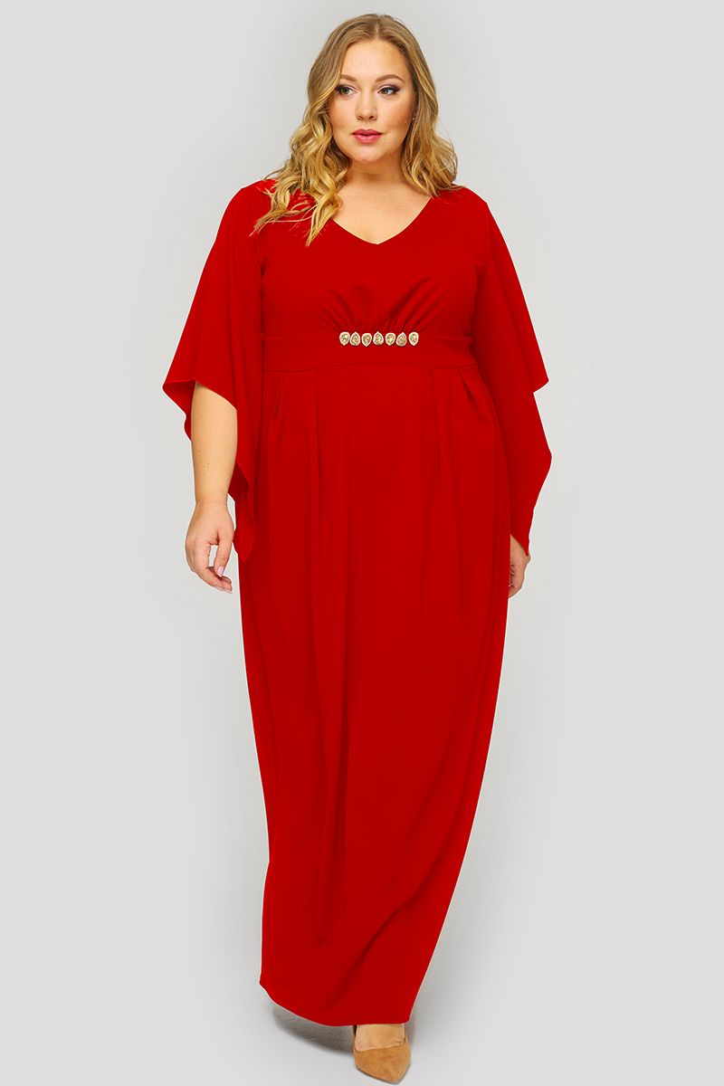 Платье вечернее из красного крепа с пришивным украшением