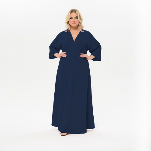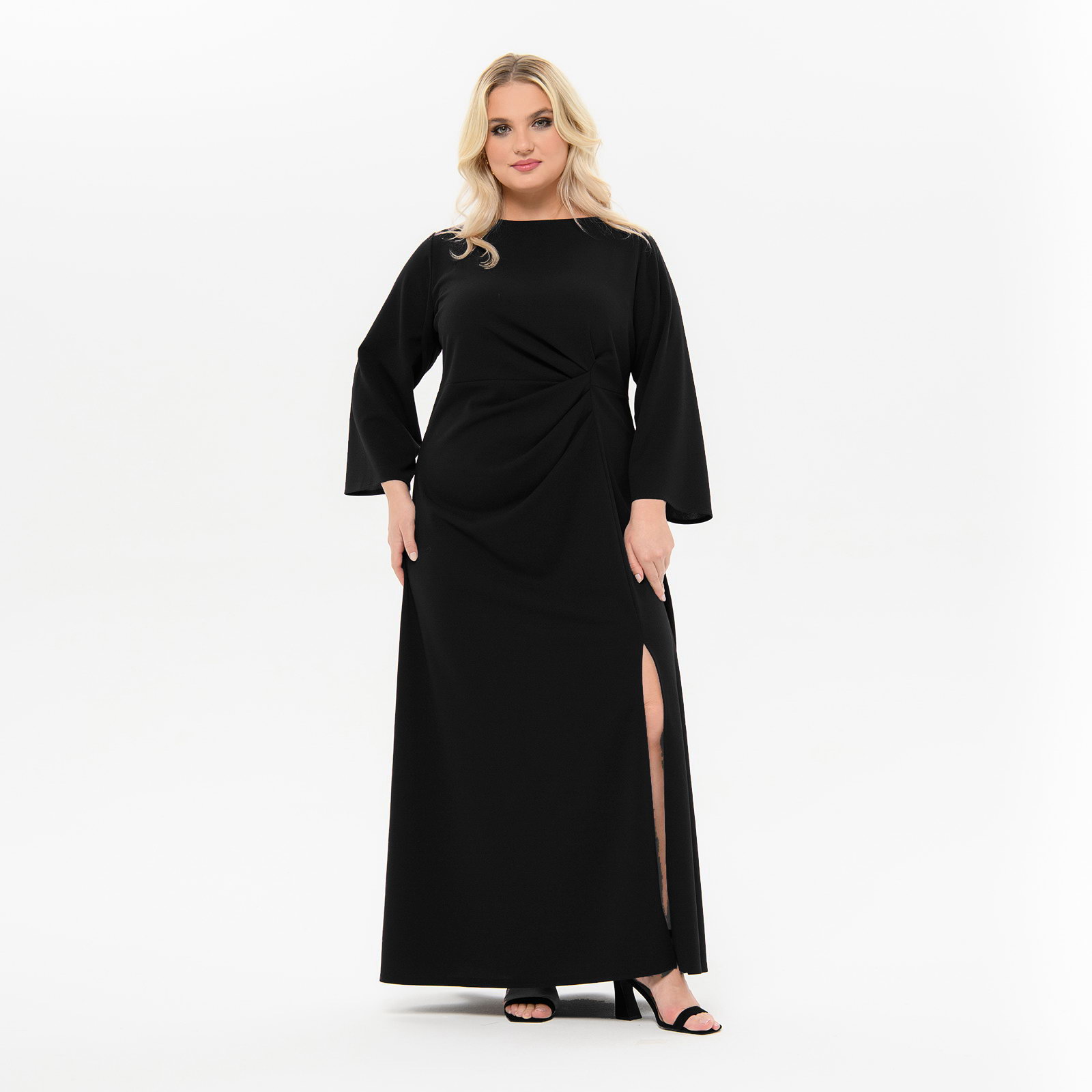 Платье вечернее, длинное, с драпировкой из плательного крепа с эластаном. Его оригинальный крой выгодно подчеркивает достоинства фигуры и скрывает малейшие недостатки.