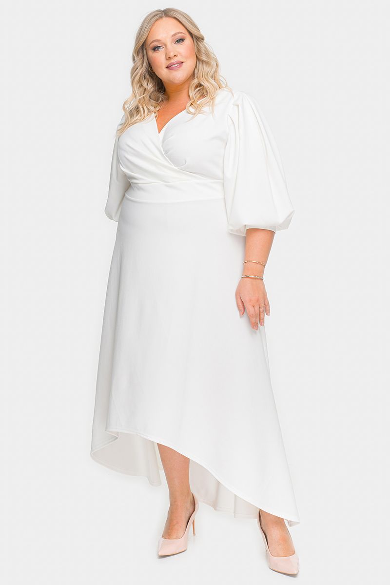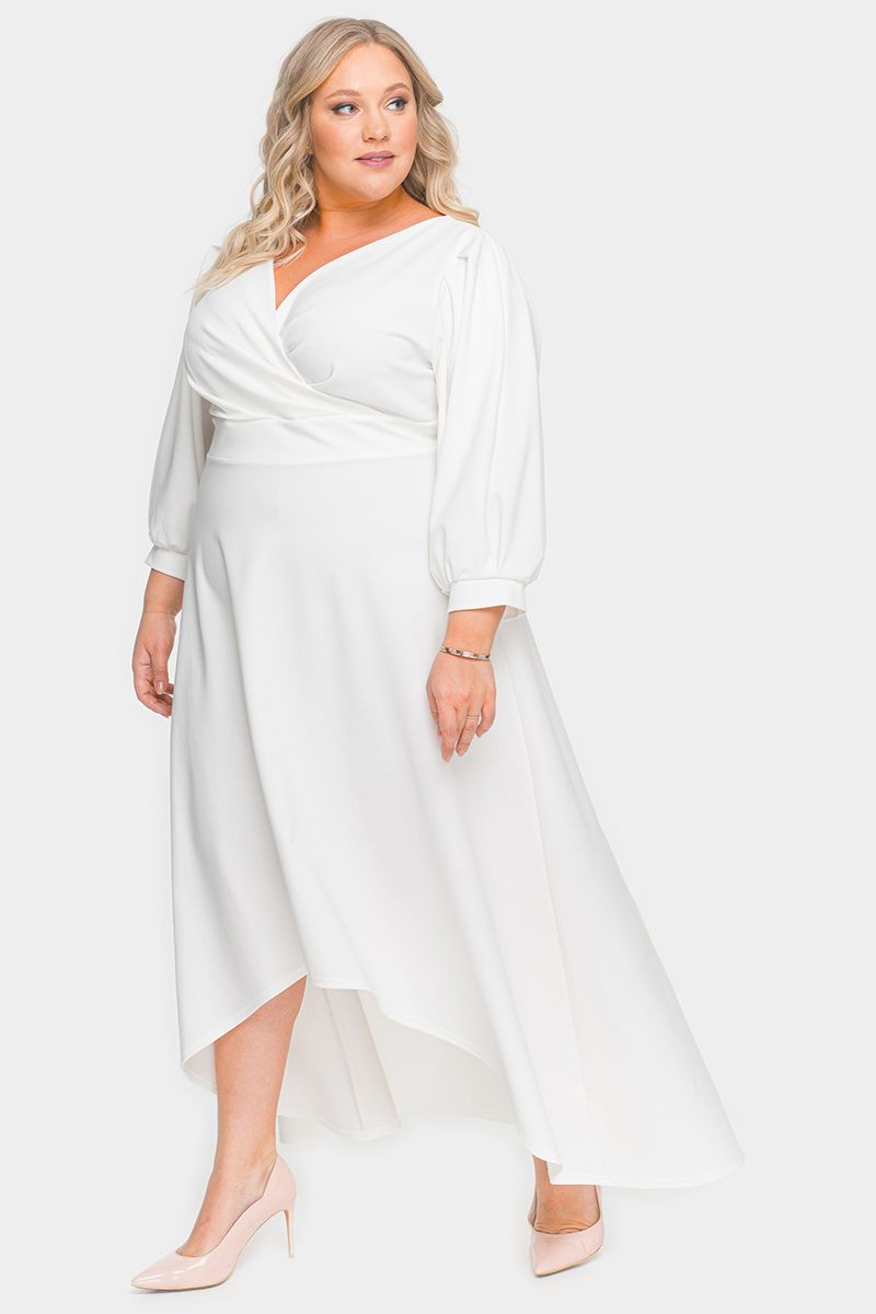Платье вечернее с драпировкой и асимметричным низом, белое