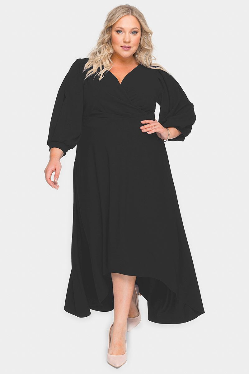 Платье вечернее с драпировкой и асимметричным низом, черное