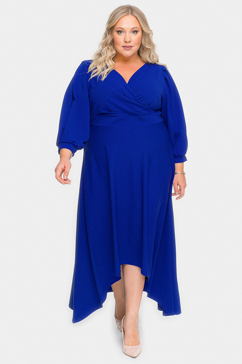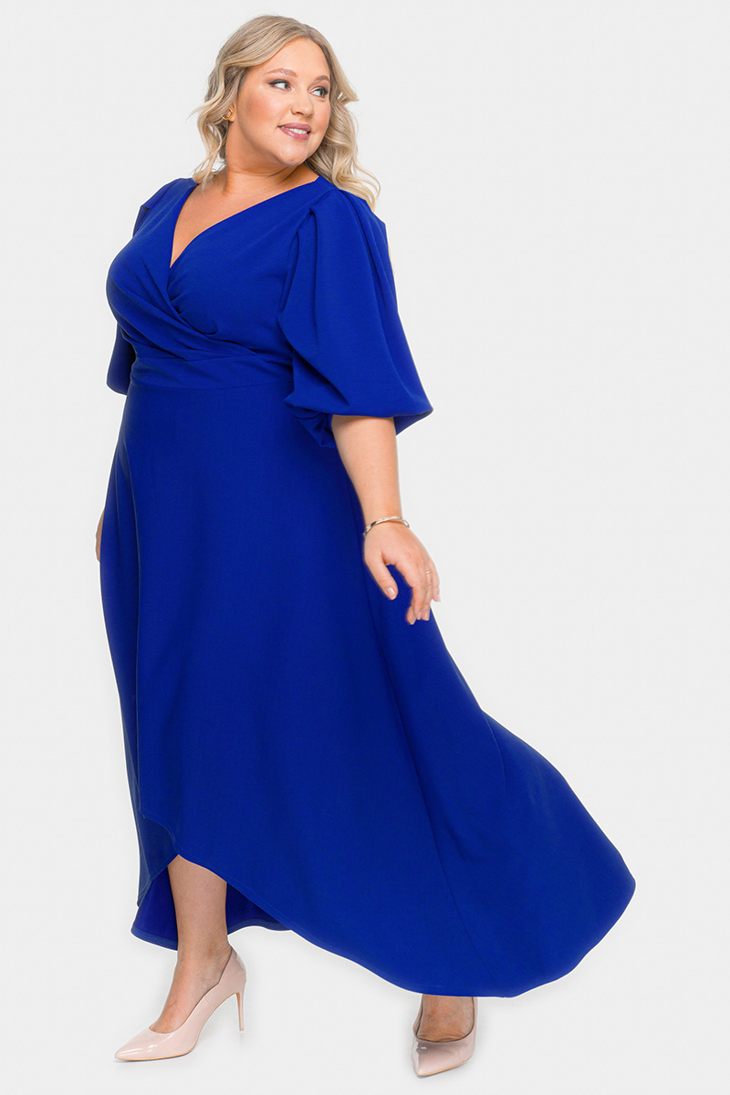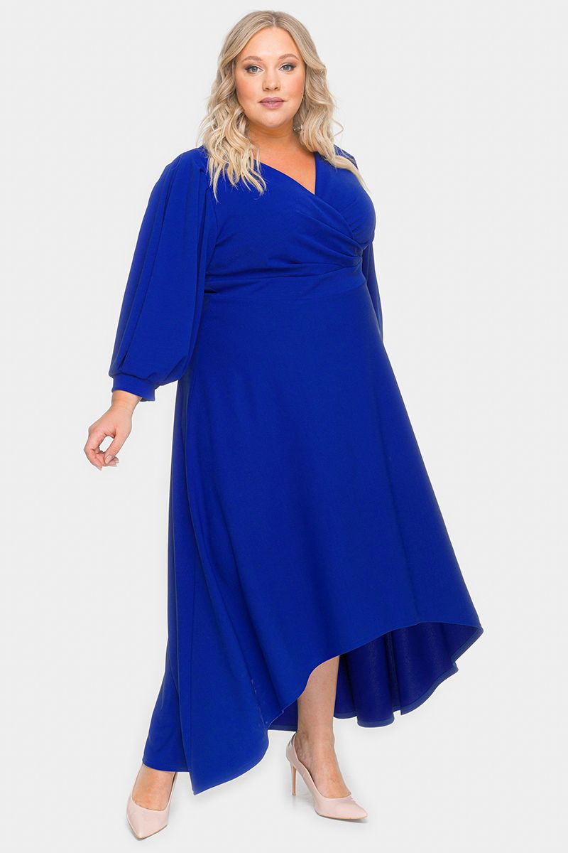 Платье вечернее с драпировкой и асимметричным низом, васильковое