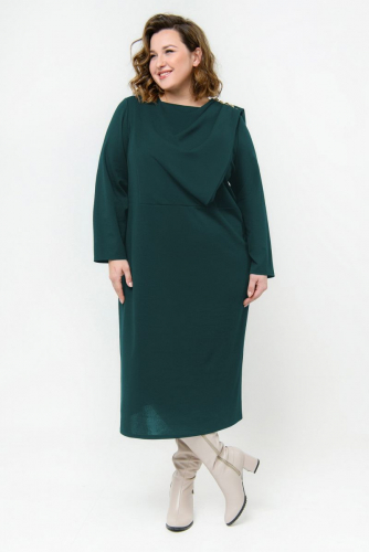 Вечернее платье полуприлегающего силуэта. V-вырез горловины по переду и по спинке. Рукав в виде "крыла" заканчивается углом по нижнему шву. Верхняя часть отрезная, на подкладке, со сборкой по центру переда под линией груди. Двойной втачной пояс. Юбка "тюльпан" с разрезом по центральному шву задней половинки.