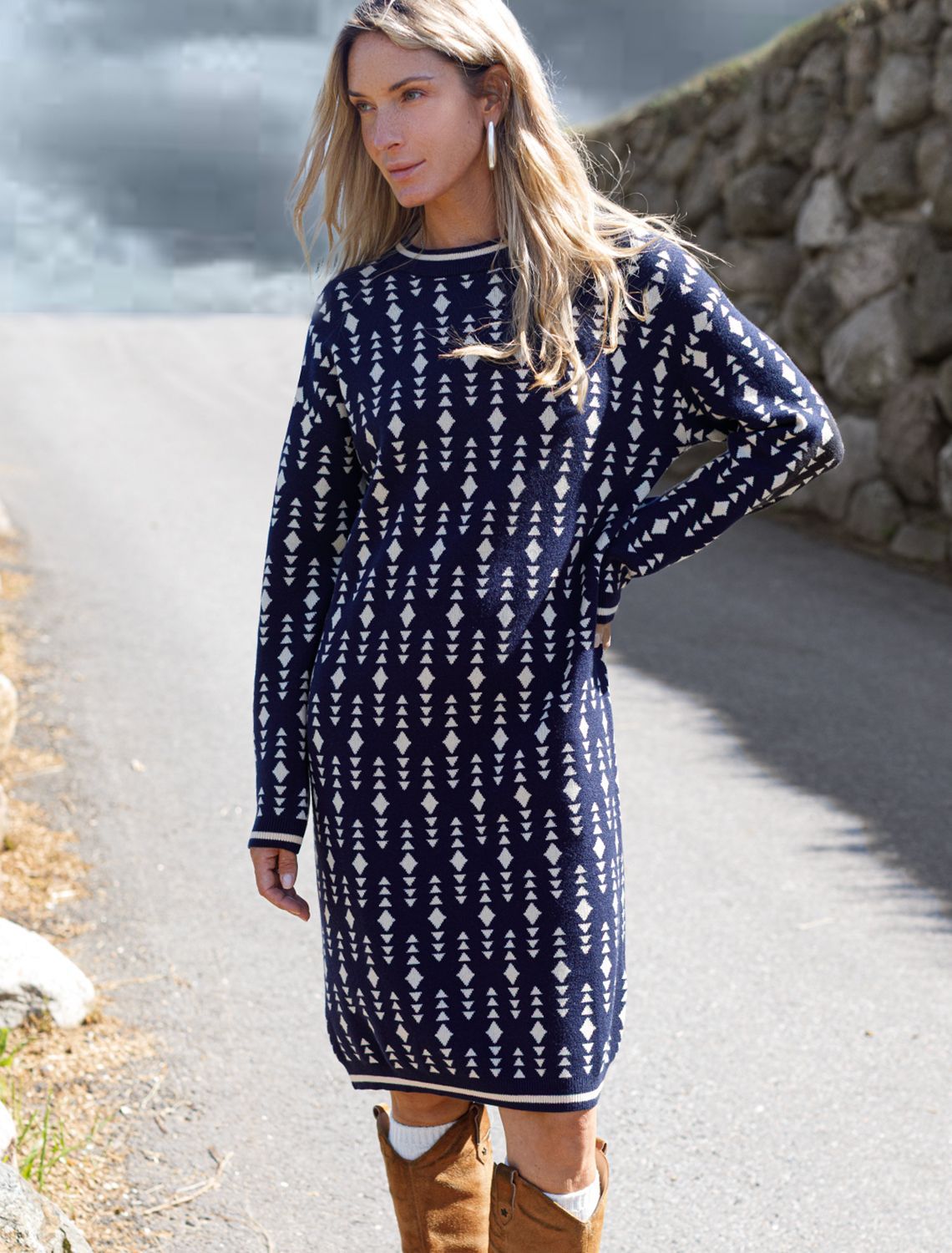 Платье жаккардовой вязки с кашемиром D32.111 синий-бежевый