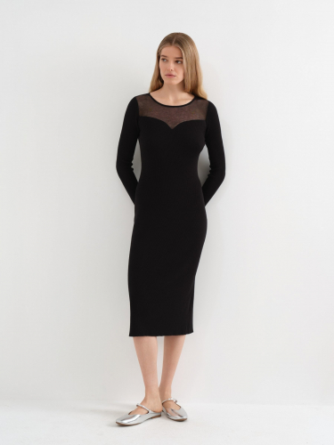 Вязаное платье миди в стиле casual из мягкого эластичного трикотажа. Выполнено из смесовой пряжи на основе вискозы фактурной вязки в мелкий рубчик. Модель дополнена акцентными деталями в виде высокого воротника-стойки, укороченных рукавов и тонкого ремня, подчеркивающего талию. Прекрасным дуэтом для платья станут туфли-лодочки на невысоком каблуке, либо ботинки челси.