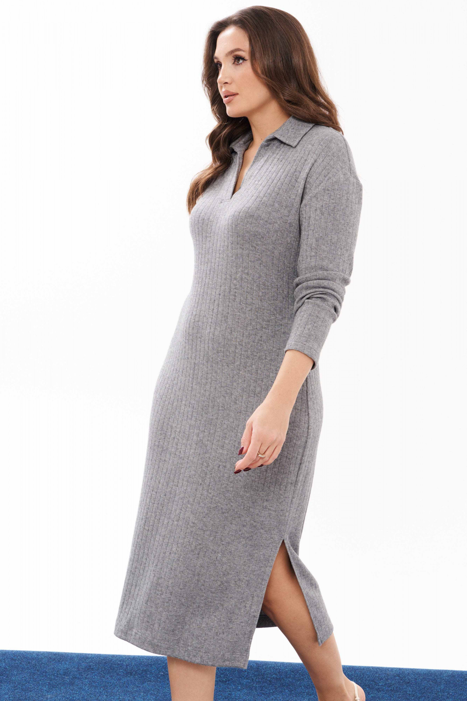 Платье женское из поливискозного трикотажного полотна для повседневной носки. Платье прямого силуэта. В боковом шве имеется небольшой разрез. Горловина V-образная, обработана рубашечным воротником с отрезной стойкой. Линия плеча чуть спущена. Рукава втачные длинные. Платье длиной мидии. В данном платье вы обязательно будете смотреться неотразимо, а главное вам в нем будет очень комфортно.