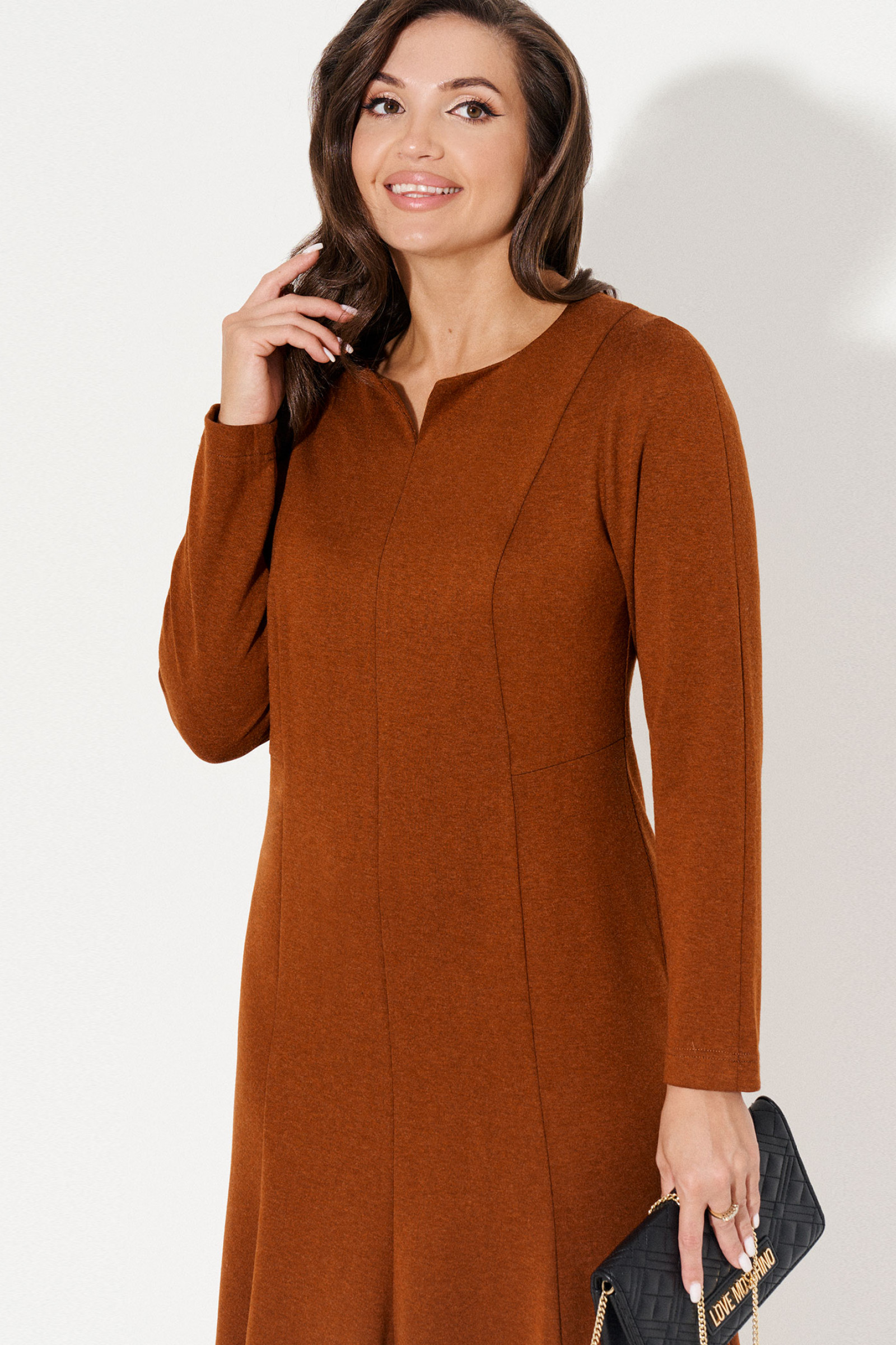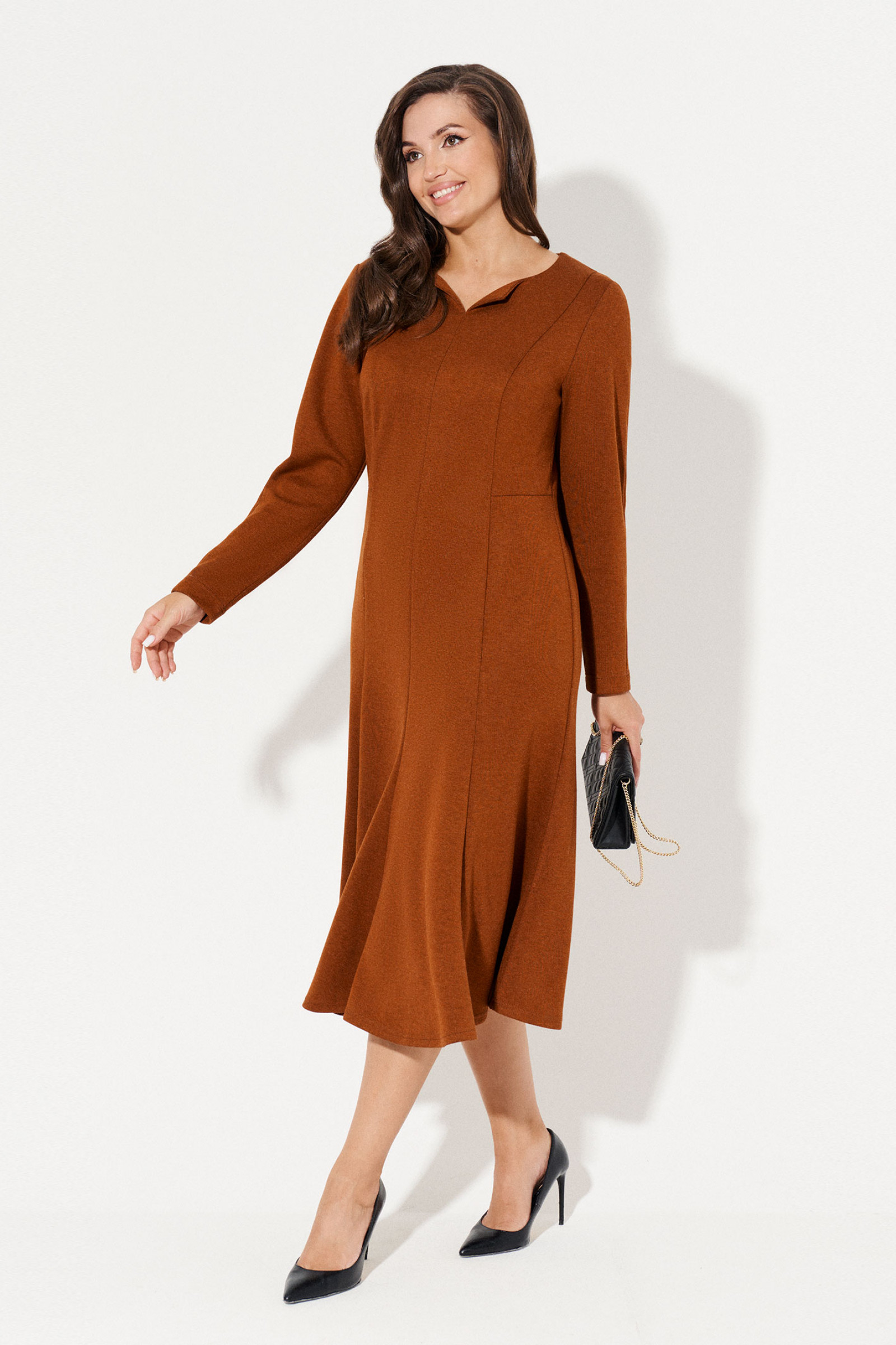 Если вам нужен универсальный вариант наряда, выбирайте трикотажное платье миди. Платье визуально отлично скрывает погрешности фигуры. Прямое платье с длинным рукавом подойдет для прохладного лета, ранее осени и поздней весны. В лаконичном стиле изделия кроется его красота. Круглая горловина изделия имеет небольшой вертикальный разрез, который подчеркивает пышную линию декольте. Заказывайте женское платье больших размеров от 50-58. Сочетайте его с различной обувью и аксессуарами, создавая нарядные или стандартные образы.