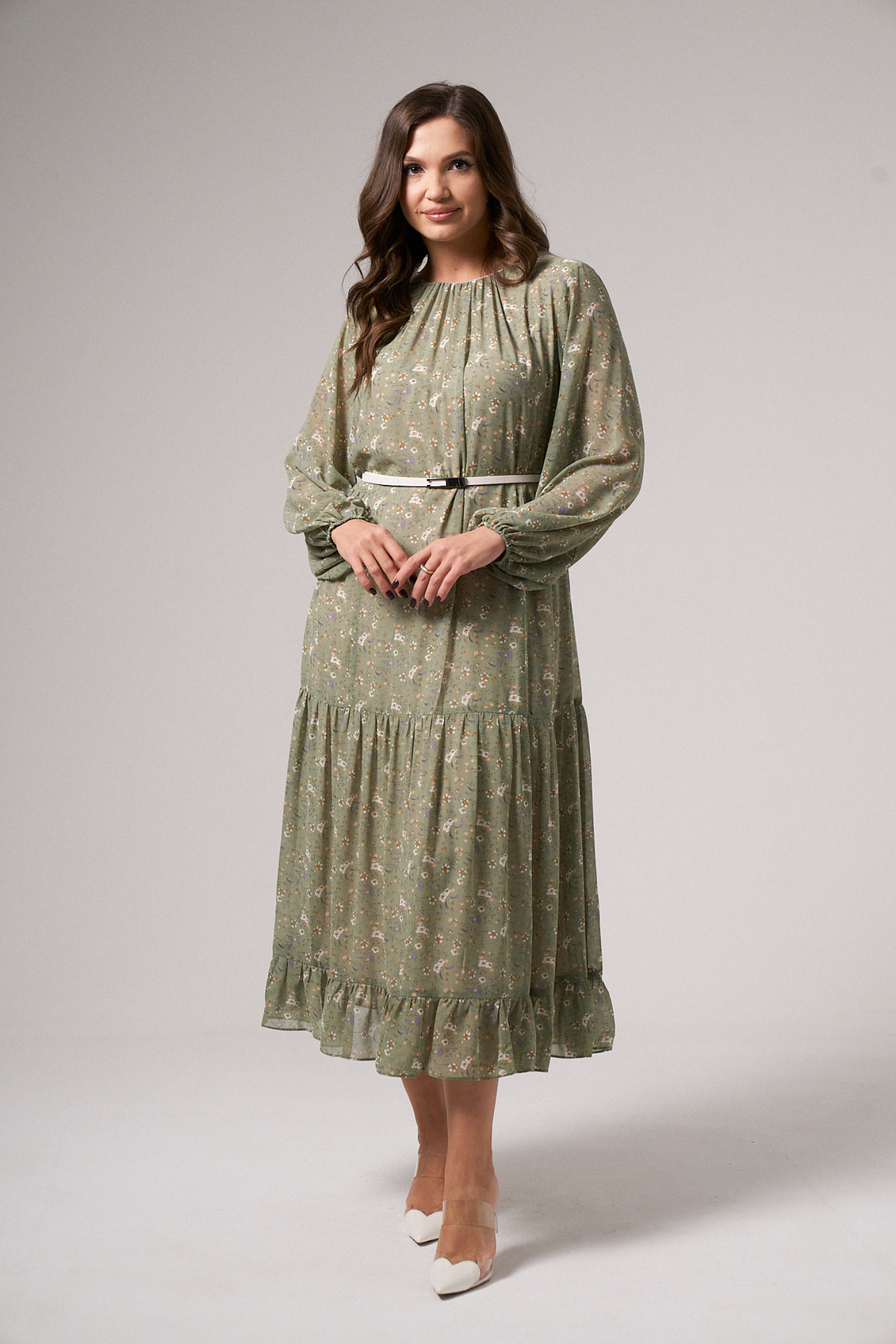 Платье праздничное женское а-силуэта станет жемчужиной вашего демисезонного гардероба. В нем можно отправиться на любое мероприятие, и оно в любой ситуации будет выглядеть уместно. Трикотажное платье женское выполнено в длине миди. Линия горловины – круглая, широкие рукава оканчиваются резинкой на манжете. Струящаяся юбка опадает вниз мягкими складками. По линии талии платье женское нарядное дополнено поясом из основной ткани. Платье предлагается к продаже в больших размерах для женщин. Вы можете выбрать и купить подходящий вариант из линейки 48-56.