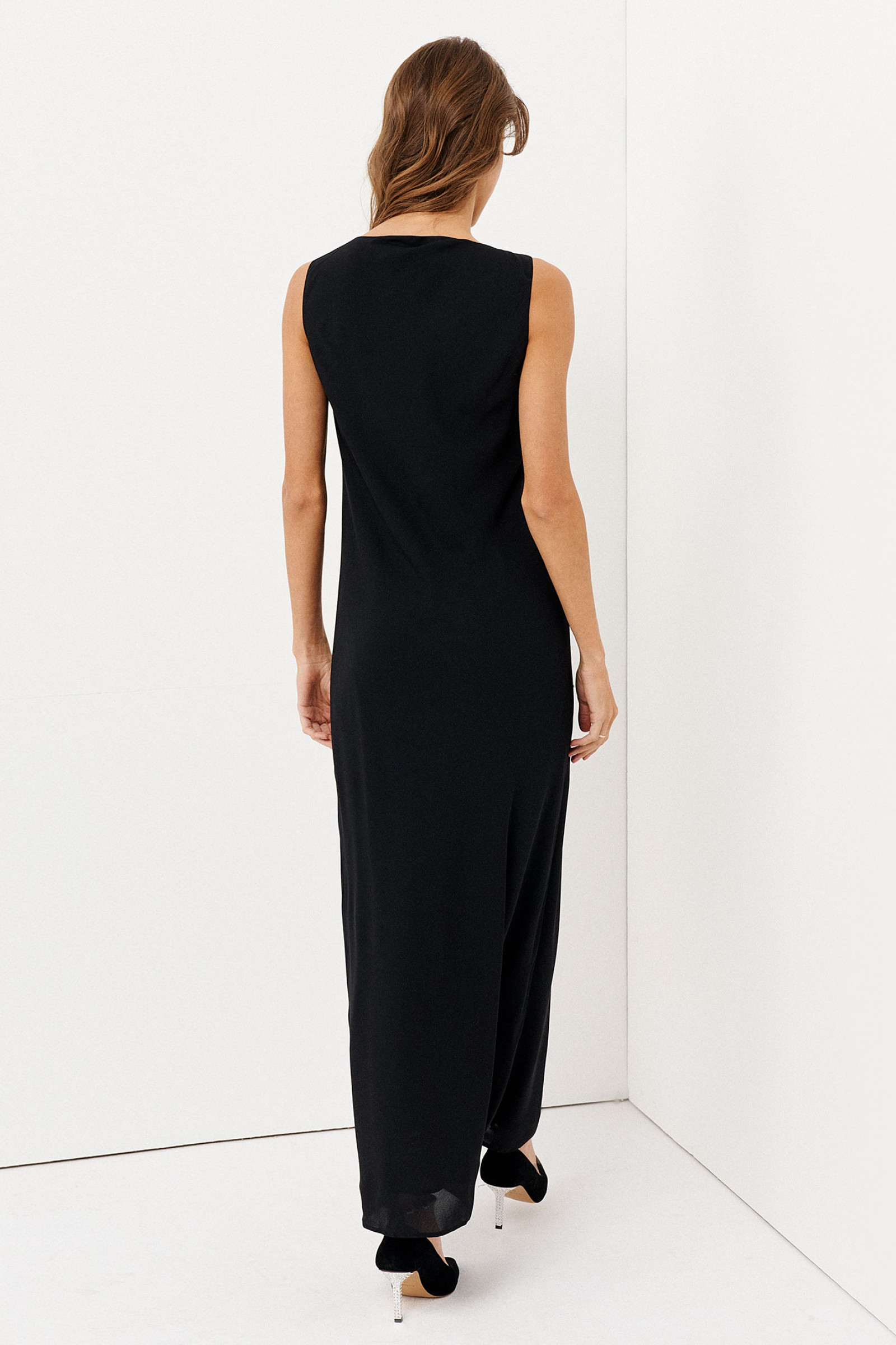 46 Платье: Длина изделия - 134.5см, Длина до талии - 43.5см, Ширина плеча - 5см, Ширина по бедрам - 56см, Ширина по груди - 49.5см;