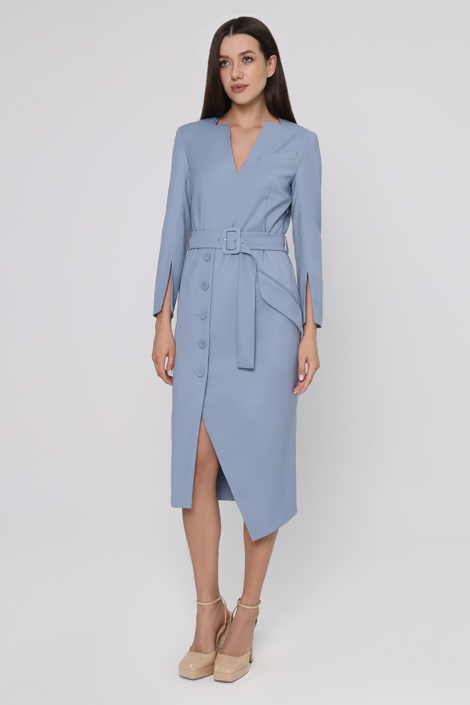 44 Платье: Длина изделия - 115см, Длина рукава - 56см, Длина спинки до подреза - 39.5см, Ширина плеча - 12.8см, Ширина по бедрам - 50см, Ширина по груди - 47см, Ширина рукава - 17.5см;