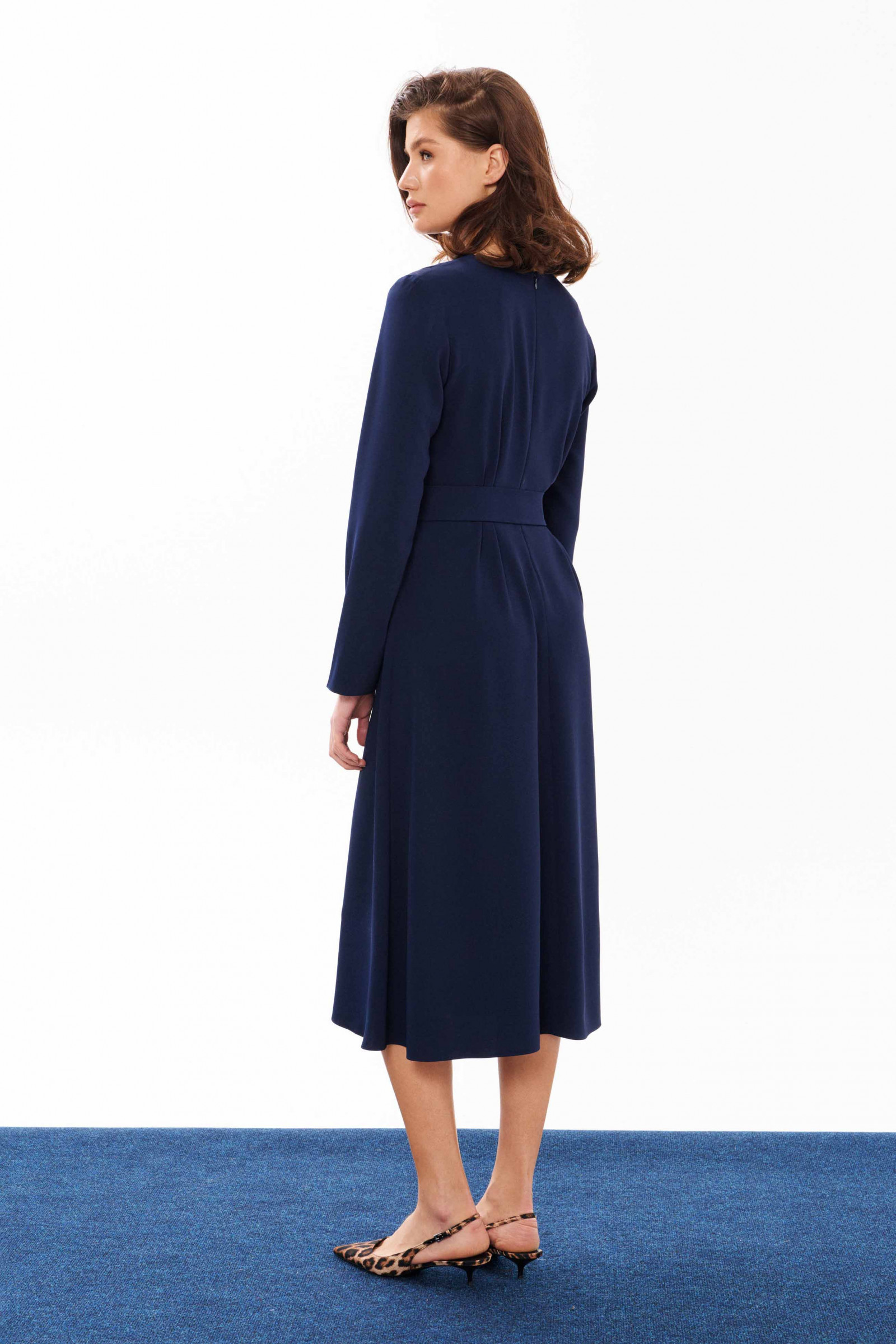Платье женское из струящейся ткани для повседневной носки. Платье прямого силуэта. Перед имеет две нагрудные вытачки. Спинка со средним швом и потайной застежкой-молнией в шве. Горловина округлая. Рукава втачные длинные. Для придания формы в области талии имеется пояс с декоративным клапаном. Длина платья макси. Очень изящное платье, которое обязательно украсит его обладательницу. В данном платье вы будете чувствовать себя комфортно, а главное в нем вы будете безупречны.