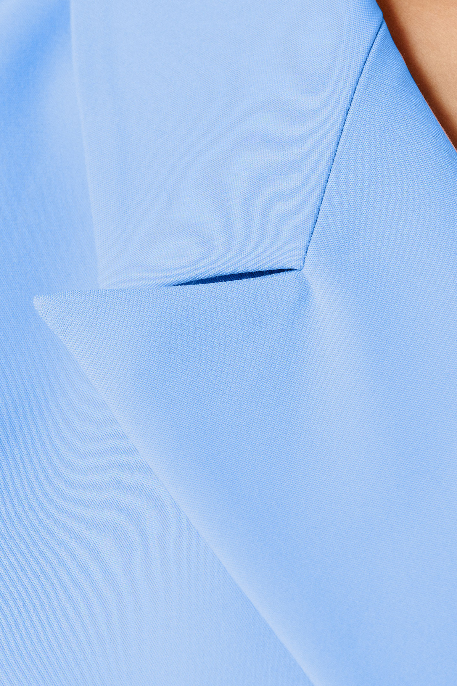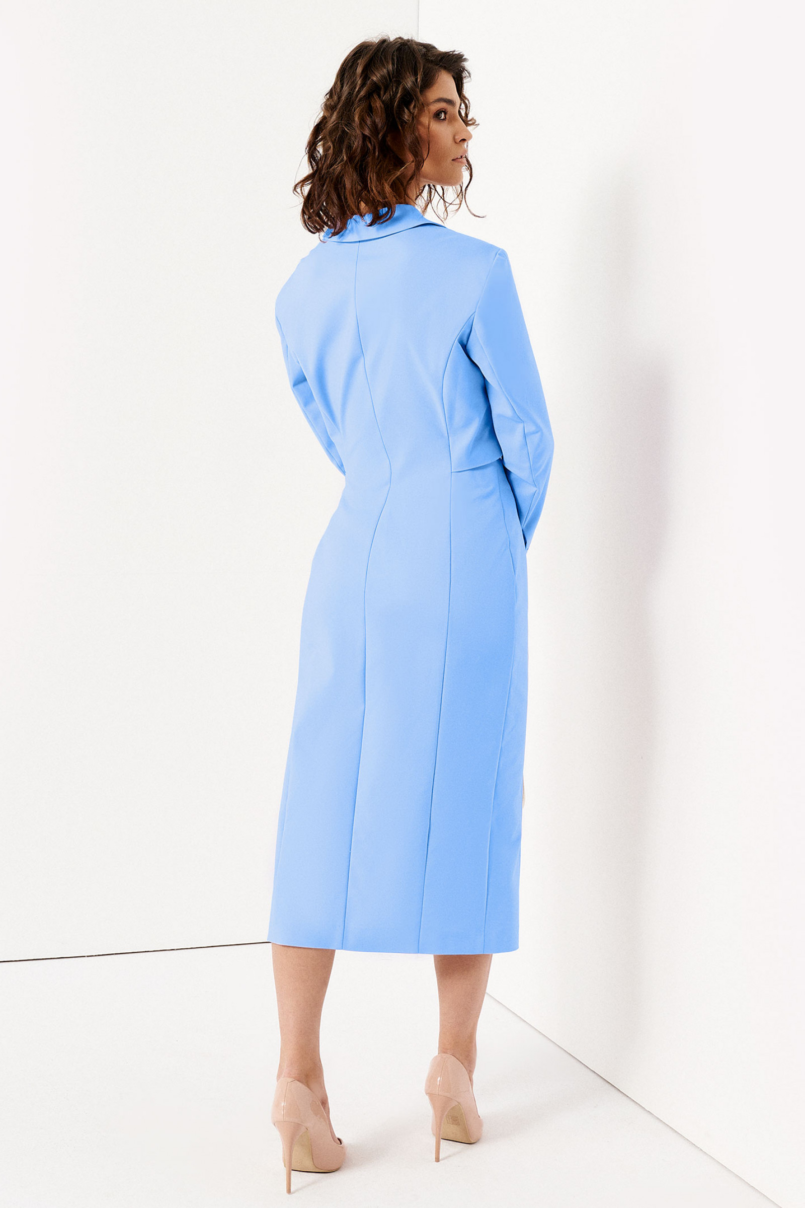 Строгое платье поможет вам стать эталоном делового стиля. Элегантную модель в сочетании со стильными аксессуарами можно надеть также на выход: в ресторан, гости, на праздничное мероприятие. Лучше всего дополнить созданный образ обувью на каблуке или танкетке. Нарядное длинное хлопковое платье с рукавами в деловом стиле имеет полуприлегающий силуэт и оригинальный крой. Верхняя часть имитирует короткий жакет с английским воротником и запахом. Боковые швы на юбке слегка смещены наперед. Один из них заканчивается высоким разрезом на ноге. Изделие доступно в размерах 40-46. Заказывайте летнее хлопковое платье длины миди по самым выгодным ценам.