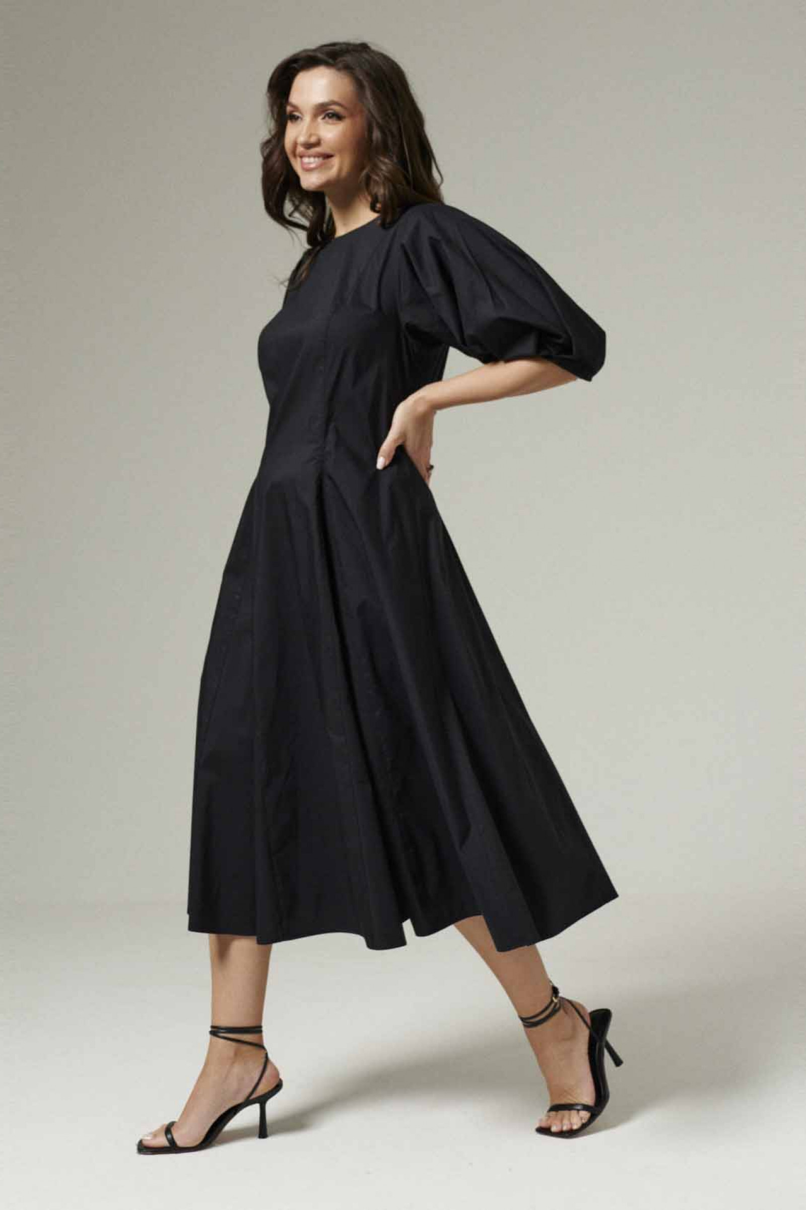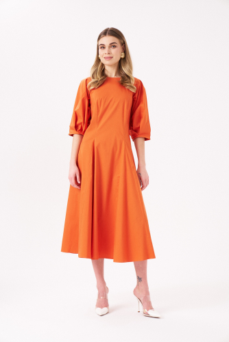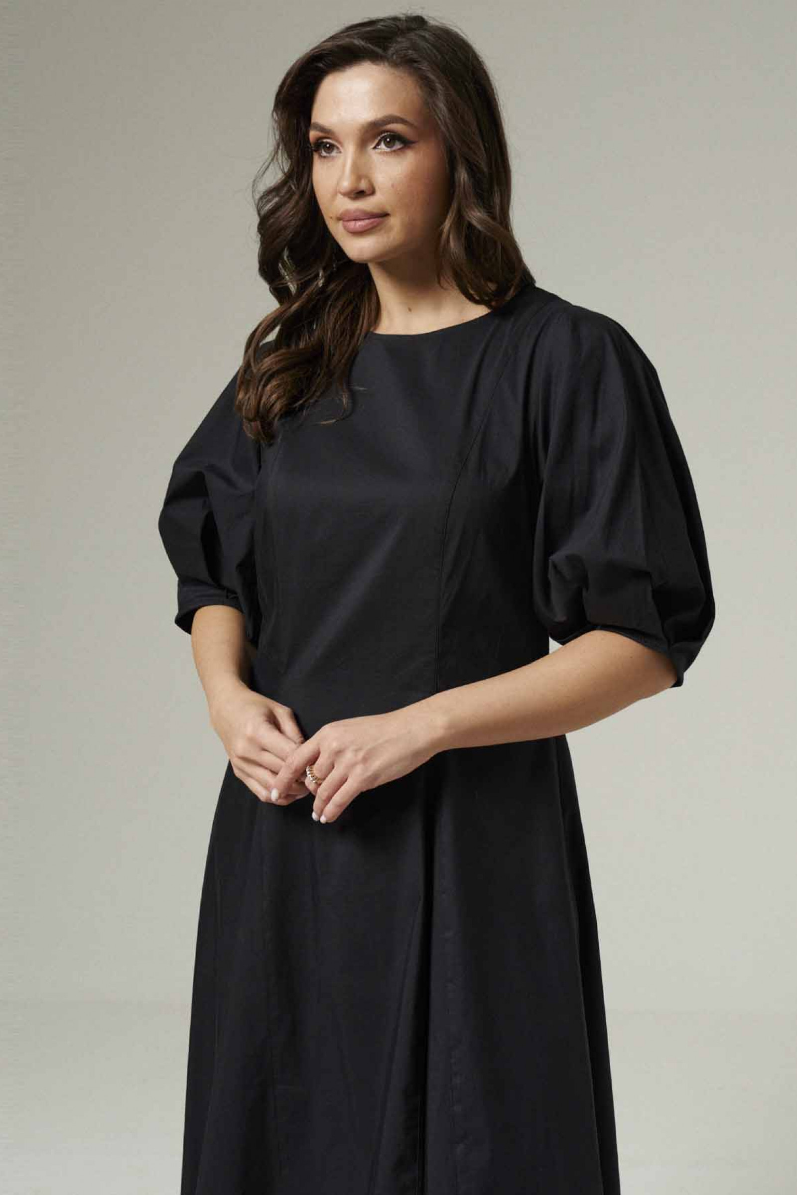 Длинное летнее платье – комфортная одежда для теплого вечера или прохладного дня. В нем вы будете выглядеть элегантно во время прогулки по городу, дружеской или романтической встречи. Подберите соответствующие аксессуары, наденьте обувь на удобной танкетке – наслаждайтесь отдыхом и своим безупречным внешним видом. Стильное хлопковое платье с объемными рукавами ¾ отлично смотрится на фигуре любого типа, благодаря слегка приталенному фасону. Фигурные швы и защипы создают красивые волны на свободной юбке. Длина изделия – ниже колена, вырез горловины – круглый. Вы можете выбрать и заказать модное летнее платье на выгодных условиях.