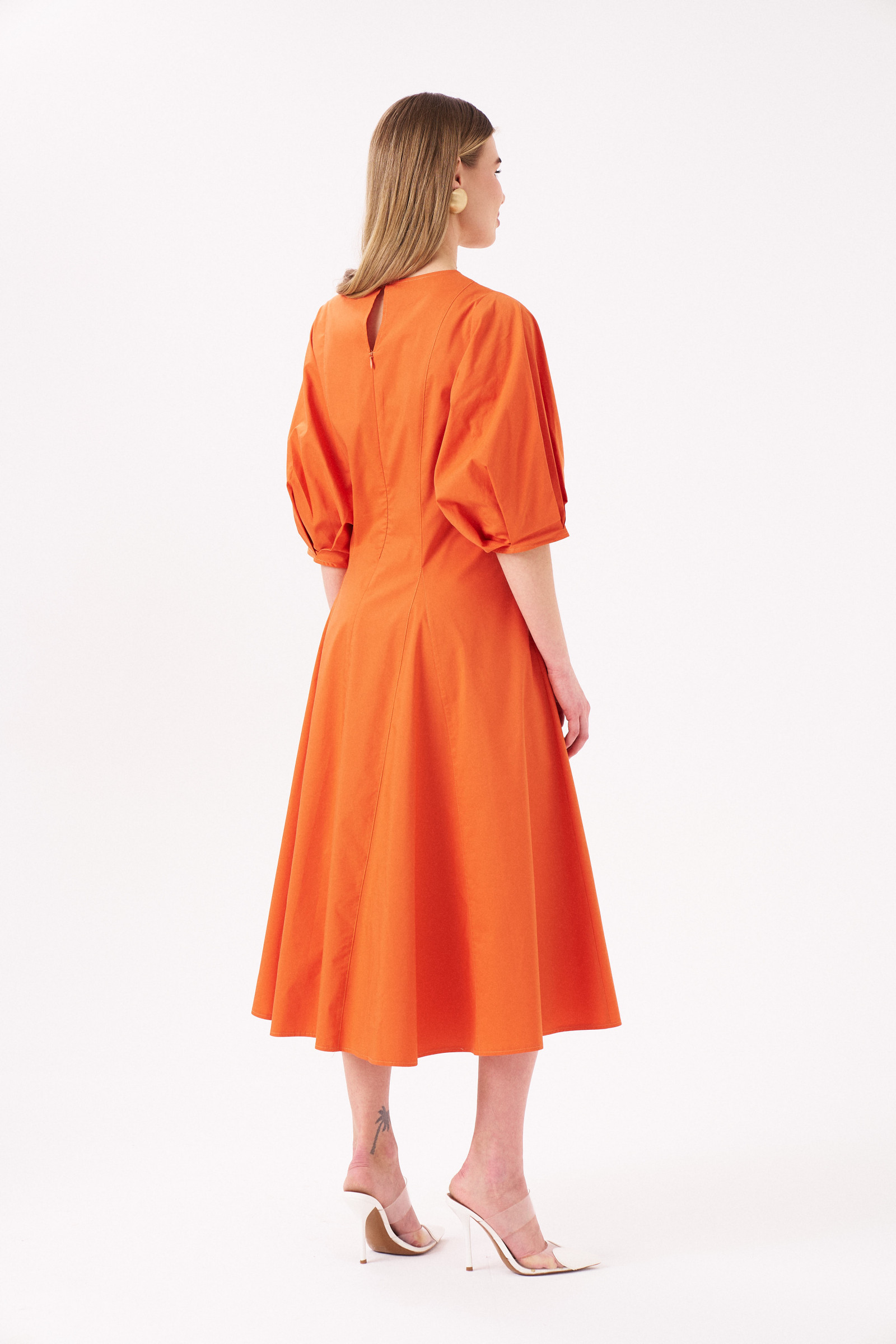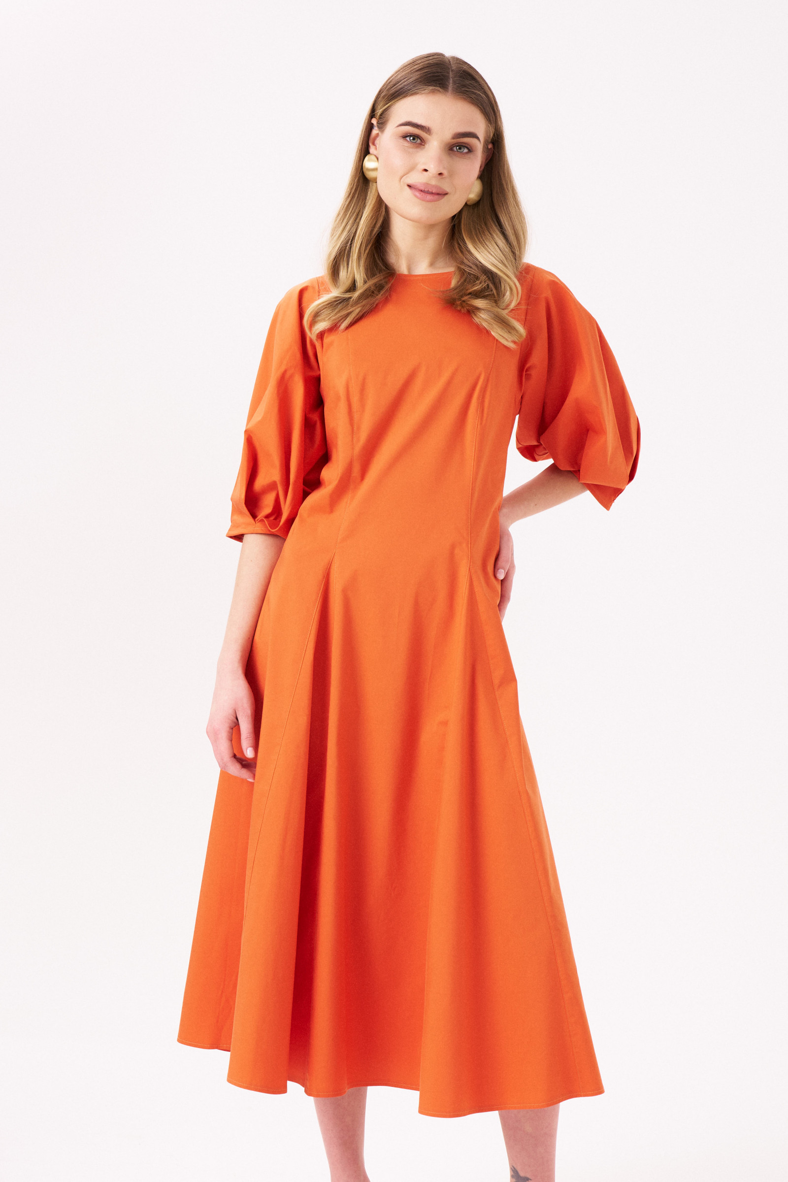 Длинное летнее платье – комфортная одежда для теплого вечера или прохладного дня. В нем вы будете выглядеть элегантно во время прогулки по городу, дружеской или романтической встречи. Подберите соответствующие аксессуары, наденьте обувь на удобной танкетке – наслаждайтесь отдыхом и своим безупречным внешним видом. Стильное хлопковое платье с объемными рукавами ¾ отлично смотрится на фигуре любого типа, благодаря слегка приталенному фасону. Фигурные швы и защипы создают красивые волны на свободной юбке. Длина изделия – ниже колена, вырез горловины – круглый. Вы можете выбрать и заказать модное летнее платье на выгодных условиях.
