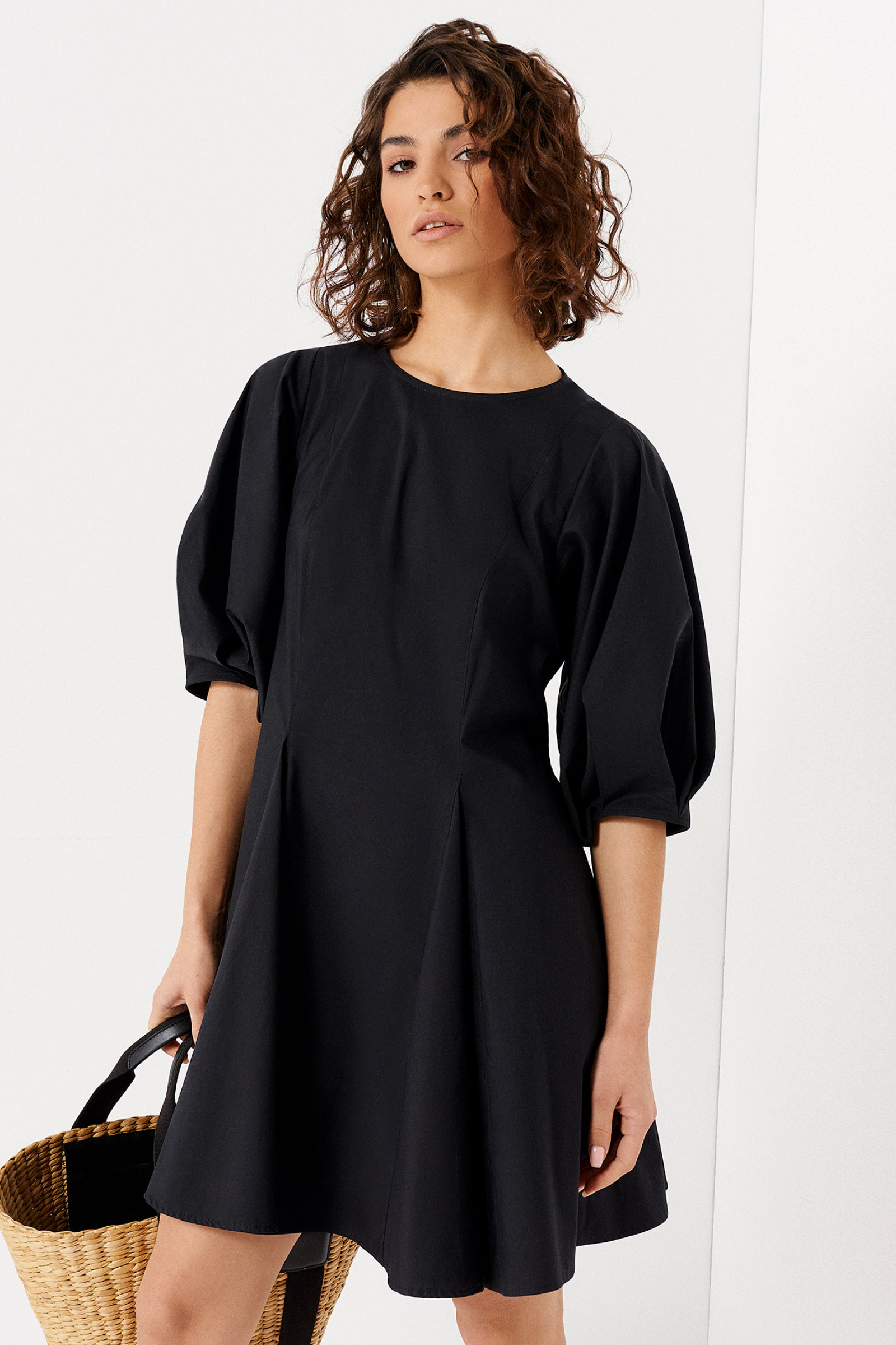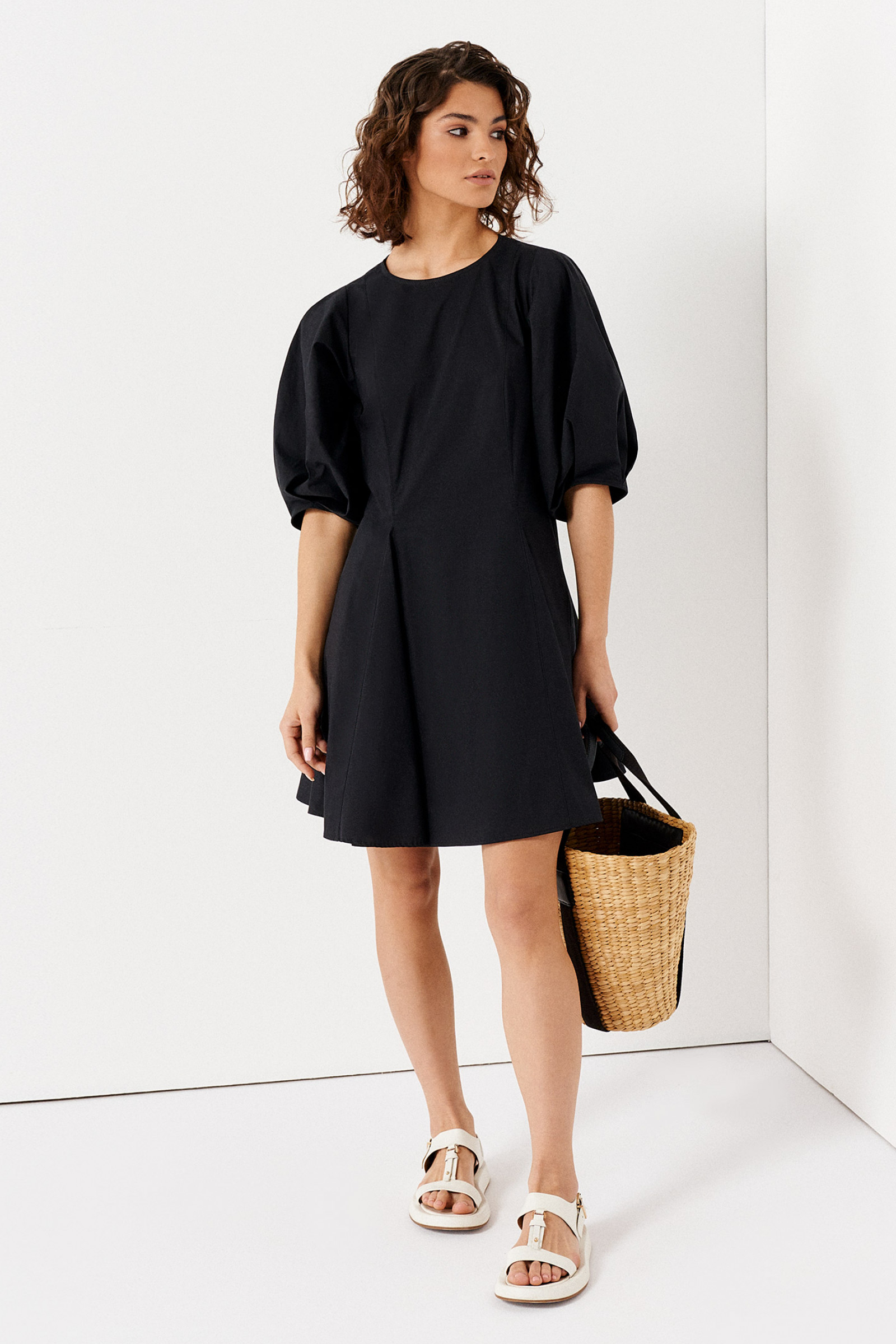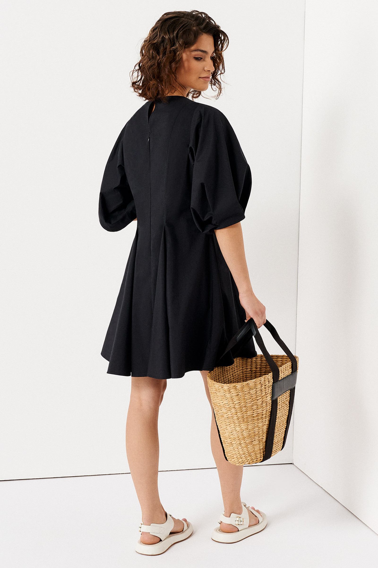 Трикотажное мини-платье – лучший выбор для вашего летнего гардероб, особенно если вы предпочитаете совмещать визуальную эстетику и комфорт. Данная модель длиной выше колена подарит повседневным образам особый индивидуальный характер. Она великолепно сочетается с разнообразной бижутерией, аксессуарами, босоножками и шлепанцами на небольшом каблуке, танкетке, плоской подошве. Однотонное платье женское с пышными рукавами до локтя скроено в А-силуэте, без вытачек, поэтому гармонично смотрится на фигуре любого типа. Изделие из нежной, тактильно приятной, воздухопроницаемой хлопковой ткани прекрасно подходит беременным. Заказывайте стильное летнее женское платье с коротким рукавом для лета по выгодной цене.