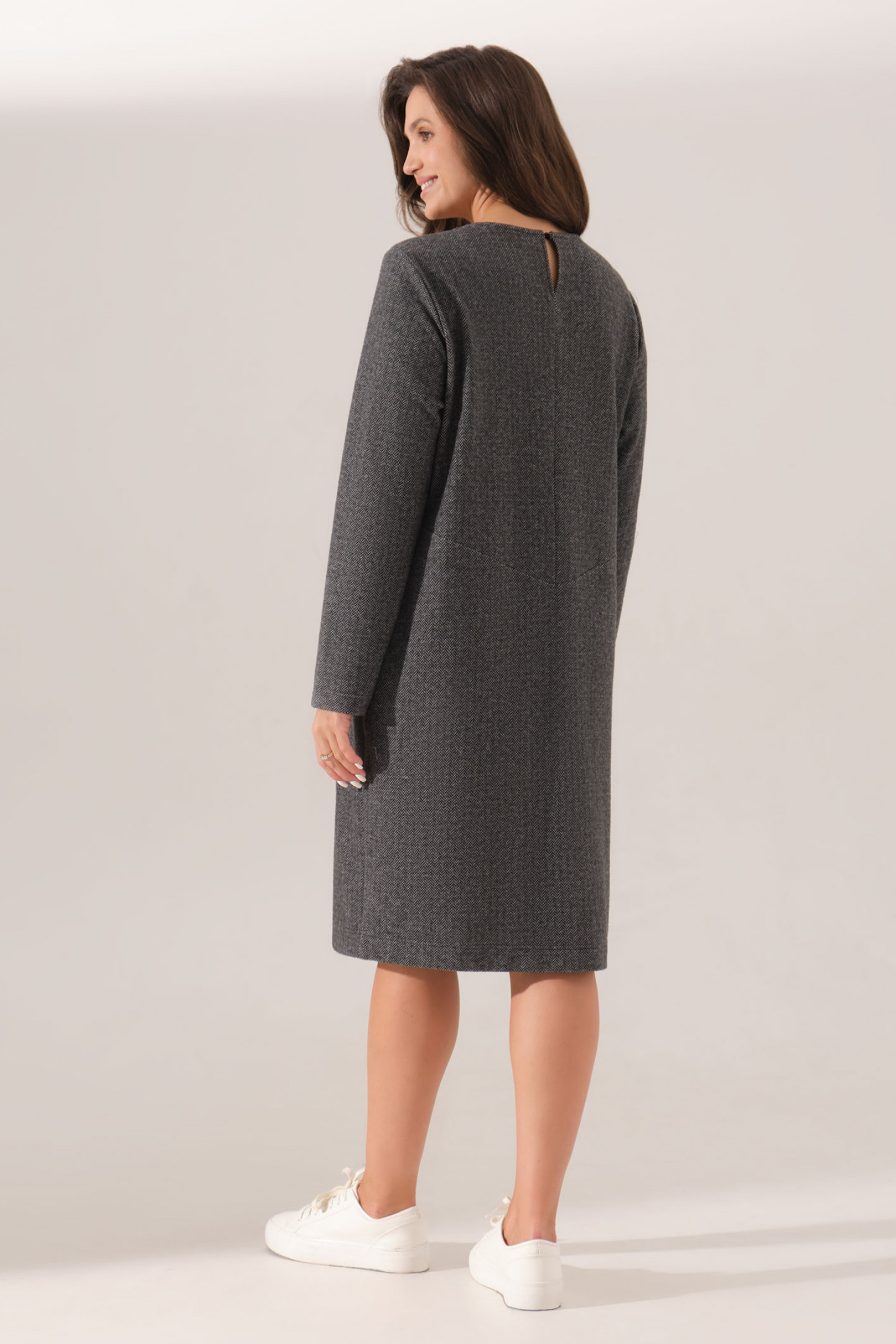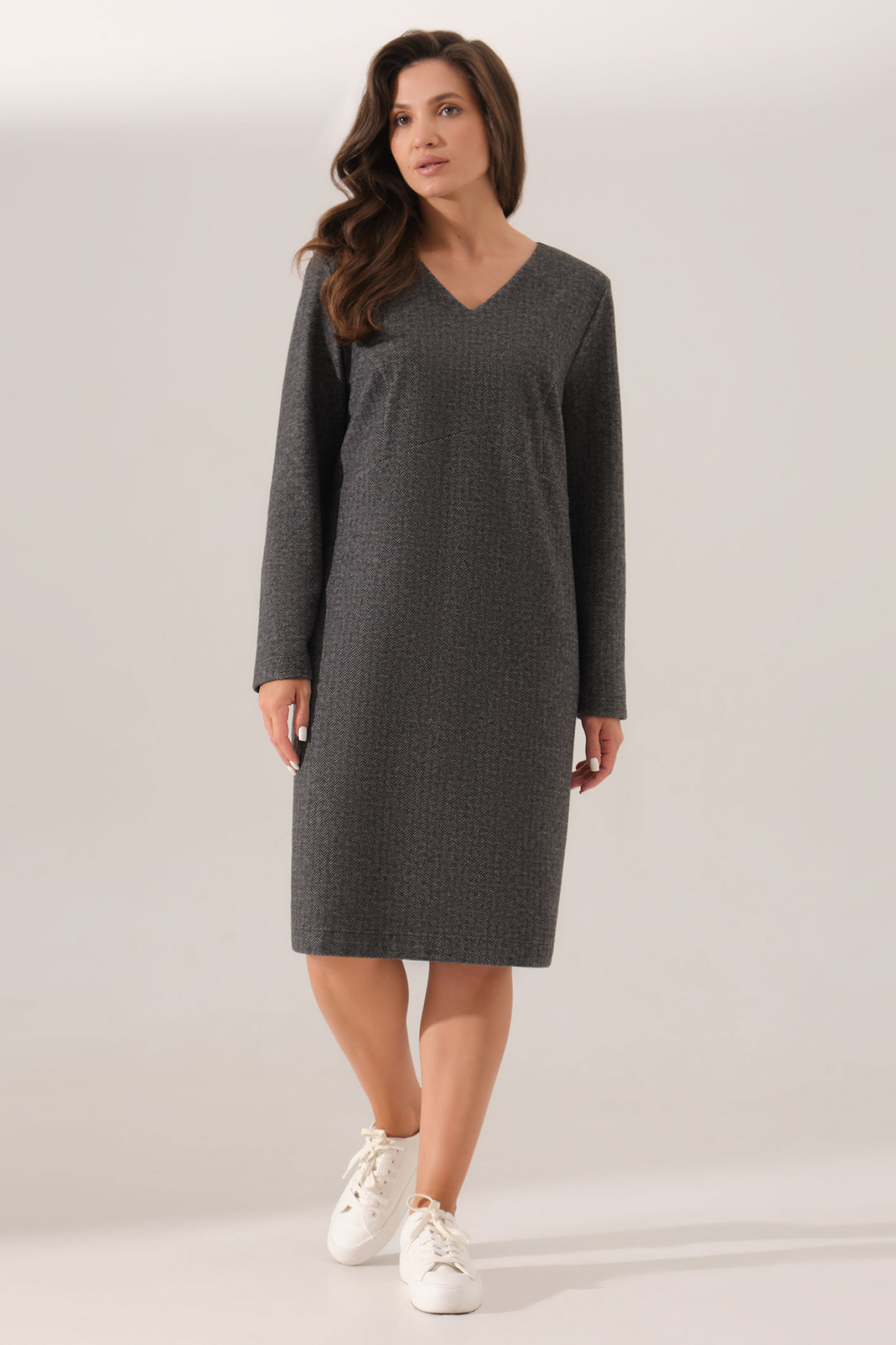 Платье женское из смесового трикотажного полотна для повседневной носки. Платье прямого силуэта. Перед отрезной по линии талии фигурной линией, смотрящей в верх. Лиф переда имеет два рельефа идущих от проймы до фигурного разреза. Лиф спинки отрезной по линии талии со средним швом, доходящим до фигурной линии, смотрящей в низ. Горловина переда V образная, обработана обтачкой. Горловина спинки имеет капельку с застежкой на петлю и пуговицу. Длина платья миди. Красивое и уютное платье, которое будет согревать вас в прохладное время, а главное в нем вы всегда будете в центре внимания.