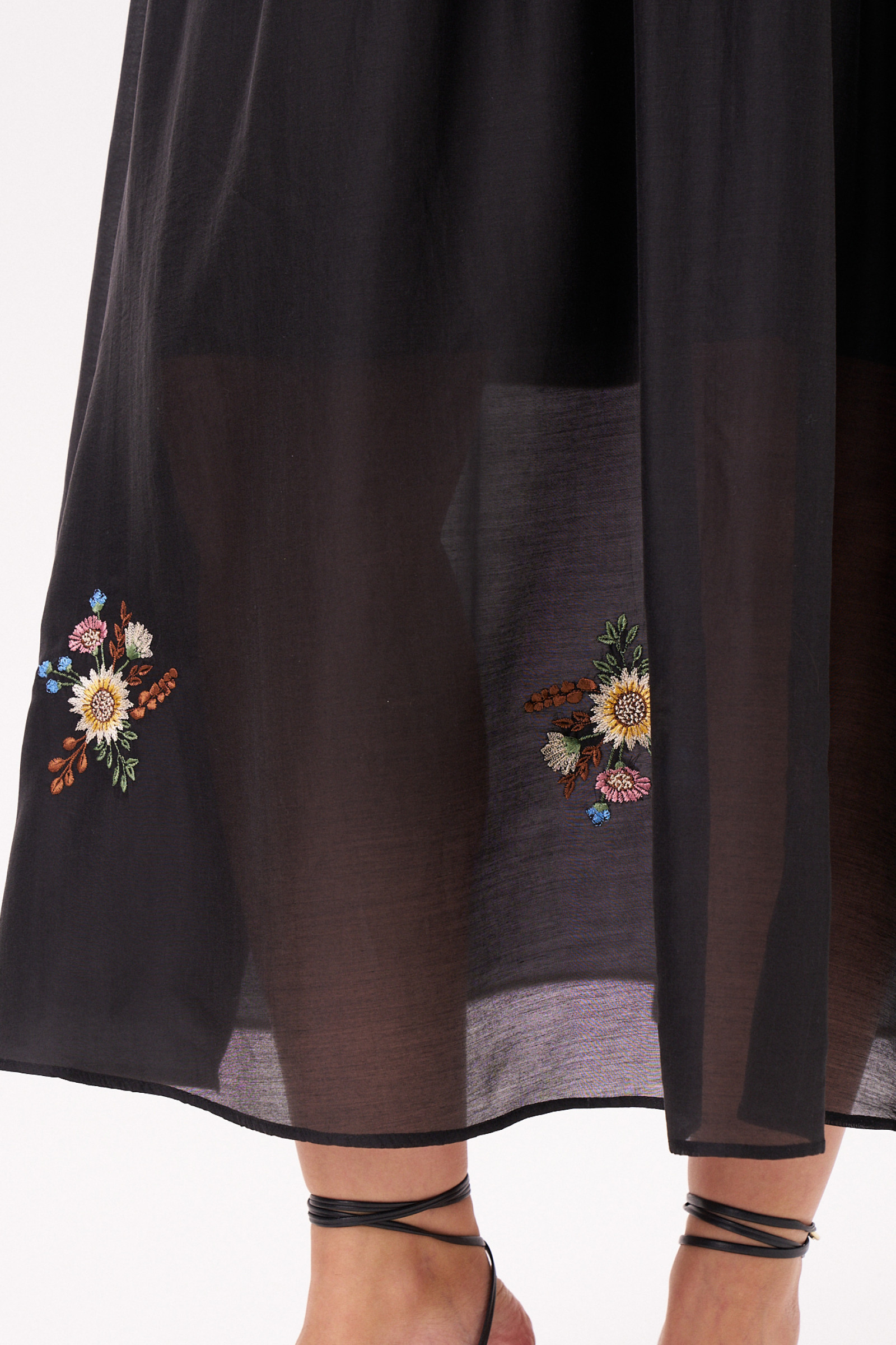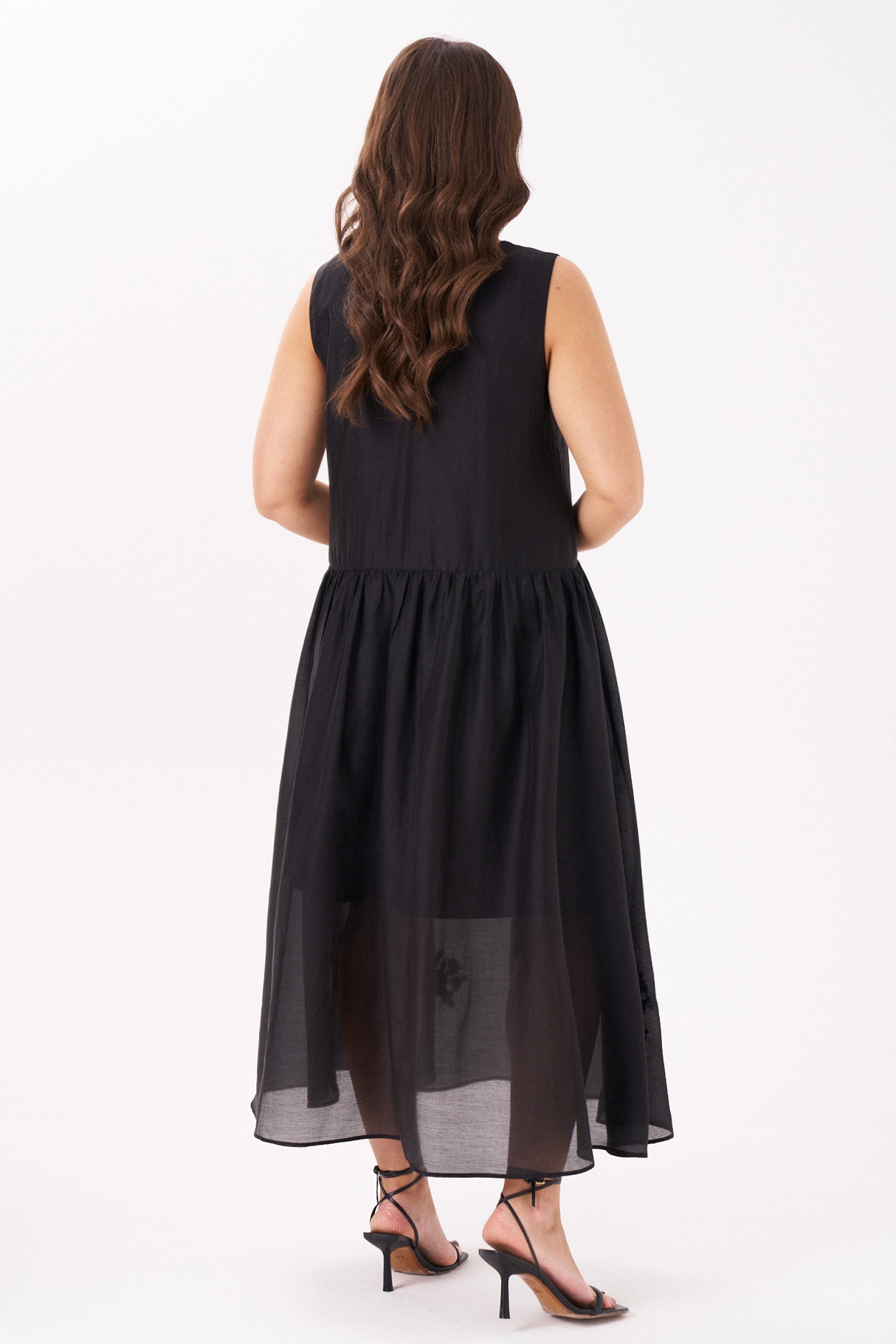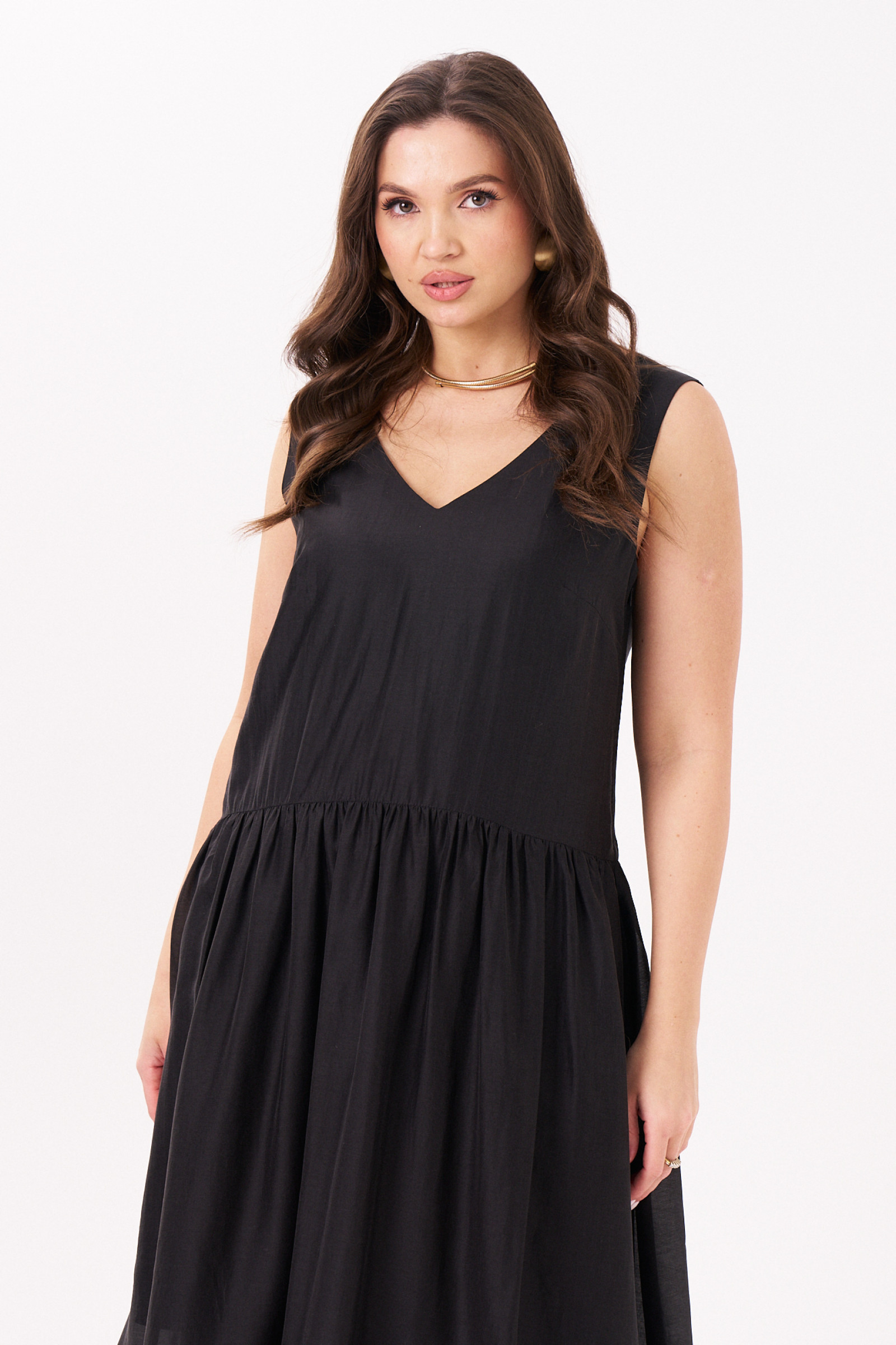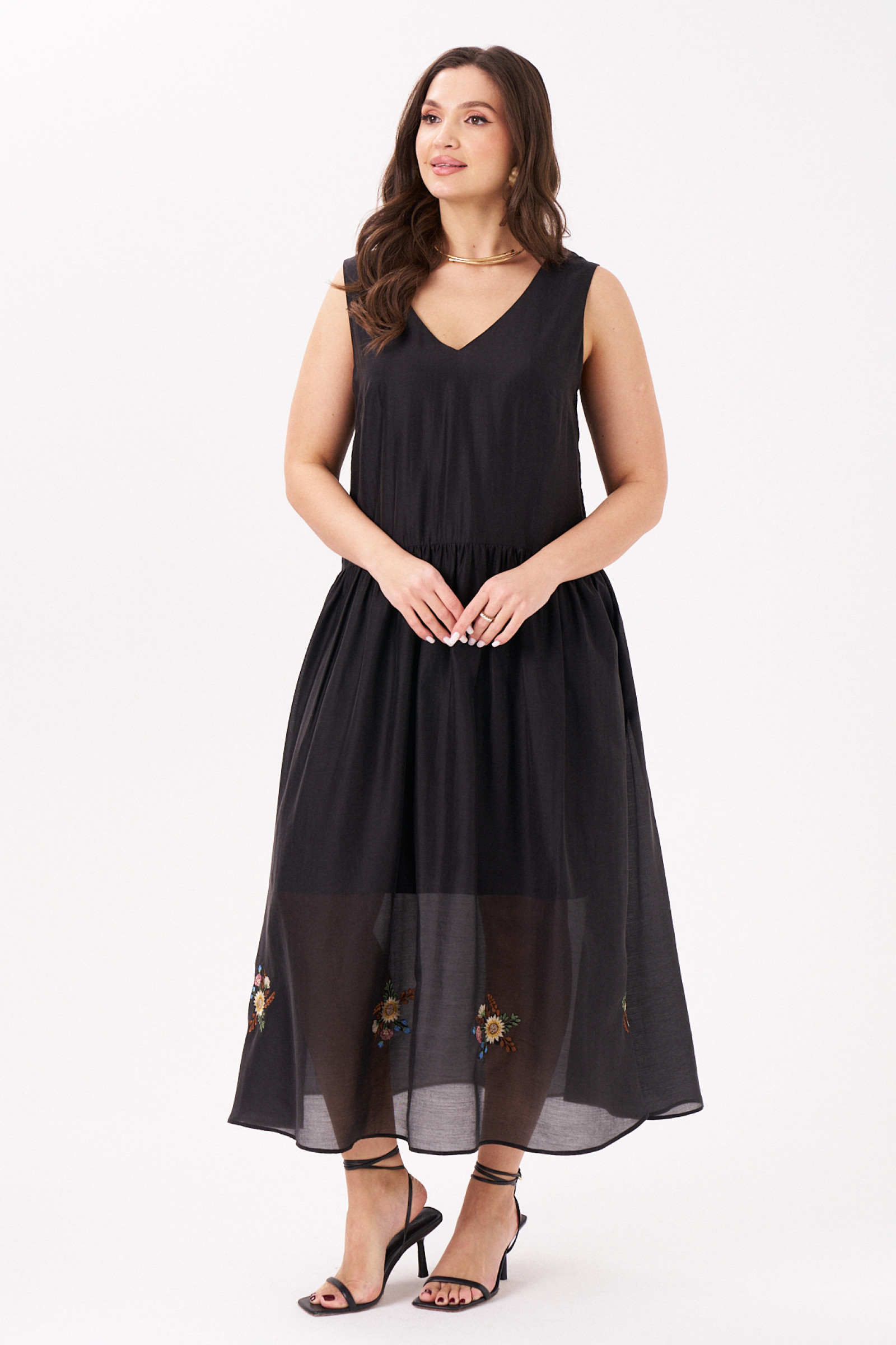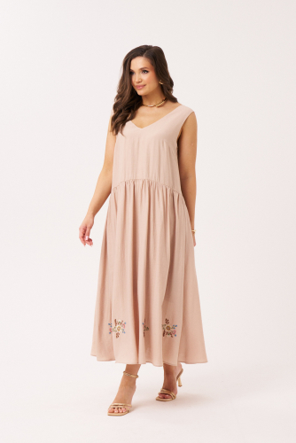 Платье женское летнее из поливискозной ткани — идеальный выбор для тех, кто ищет сочетание комфорта, стиля и универсальности. Благодаря свободному крою и расширенному к низу силуэту, оно подчеркивает женственность, оставаясь при этом удобным в повседневной носке. Классический V-образный вырез спереди и на спинке, а также широкие бретели создают элегантный образ, подходящий как для офисной обстановки, так и для праздничных мероприятий. Это базовое женское платье отличается интересным дизайнерским решением — изысканная вышивка в виде цветов на переднем полотнище юбки придаёт нарядный акцент. Лиф дополнен нагрудными вытачками, а талия подчеркнута отрезной линией со сборкой, что визуально удлиняет силуэт и придаёт лёгкость. Благодаря подкладке из вискозы, платье остаётся приятным к телу даже в тёплую погоду, что делает его отличным вариантом для летнего и весеннего гардероба. Это универсальное платье женское легко впишется как в деловой дресс-код, так и в повседневный стиль. Оно подойдёт для офиса, встреч с друзьями или даже для особых случаев, когда хочется выглядеть нарядно и стильно. Это свободное, классическое и одновременно праздничное решение, которое подойдёт каждой женщине, стремящейся к гармонии между комфортом и модой.