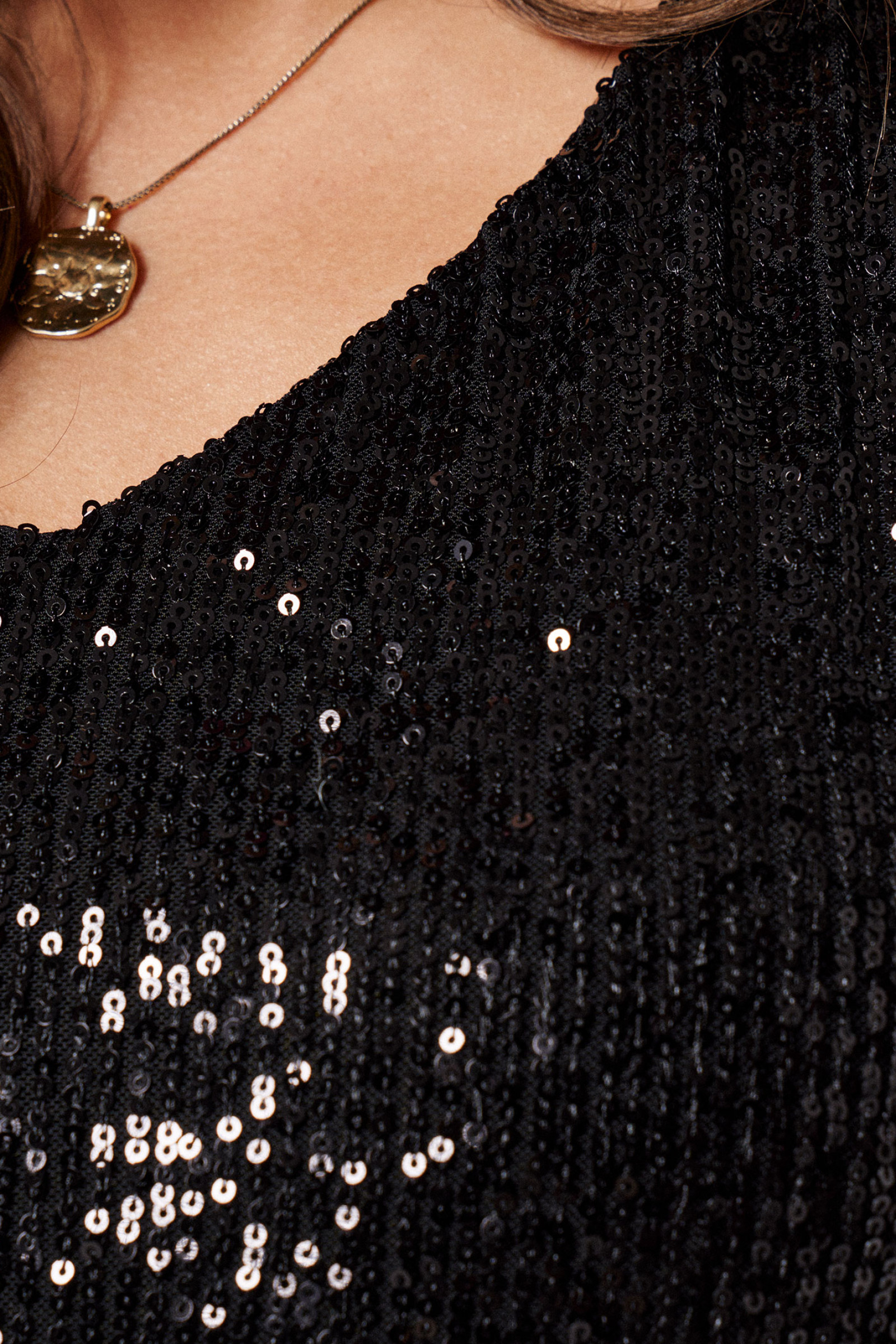 Платье прямого силуэта из нарядной ткани в пайетки, Платье на подкладке, Горловина V- образная.