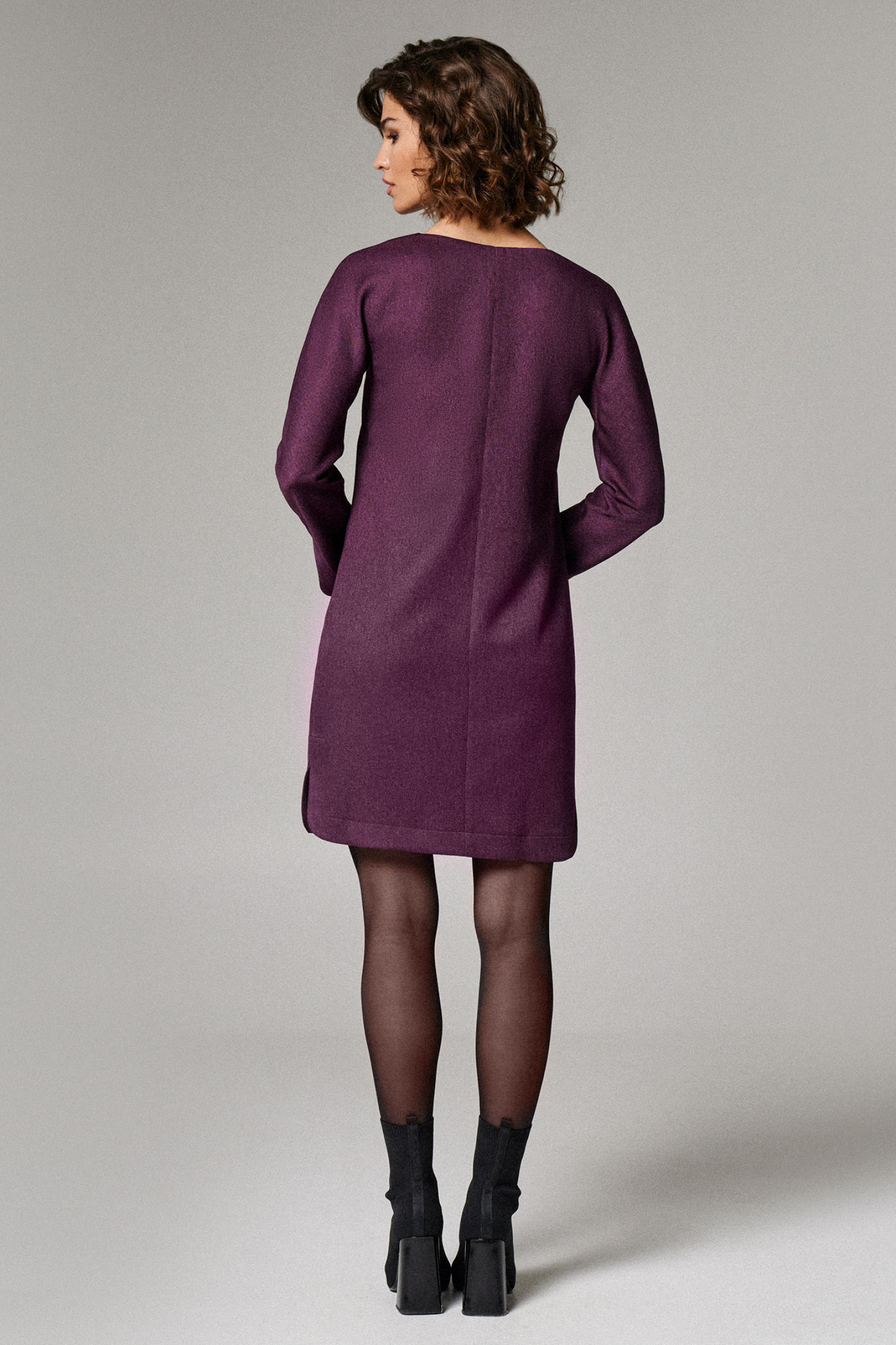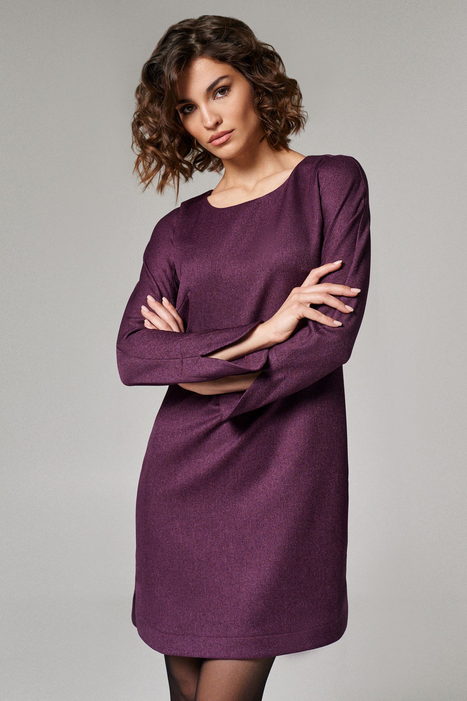 Платье женское прямого силуэта, с целькроеным рукавом и ластовицей для удобства поднятия руки.