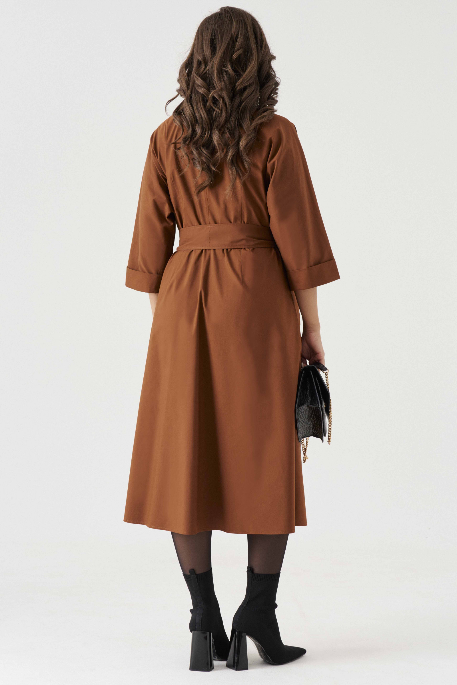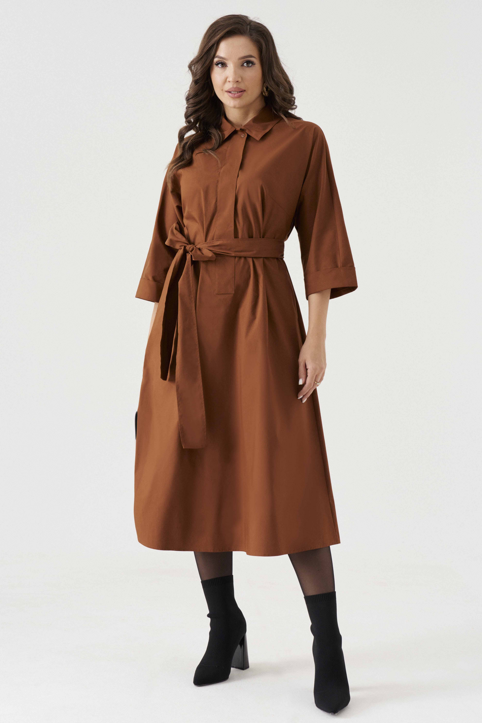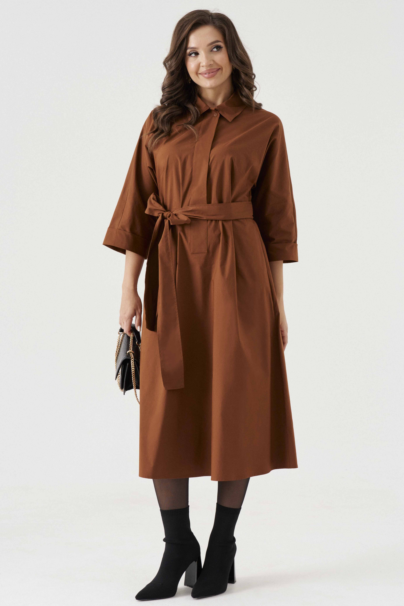Платье из хлопковой ткани для повседневной носки. Платье А-силуэта с длинным цельнокроеным рукавом оформленным притачной манжетой. Воротник отложной. В боковых швах имеются прорезные карманы. Платье имеет пояс для придания формы в области талии, пояс из основной ткани изделия. Длина платья до середины голени. Красивое платье, в котором вы будете чувствовать себя в центре внимания. Платье очень приятное к телу, а также удобное в носке.