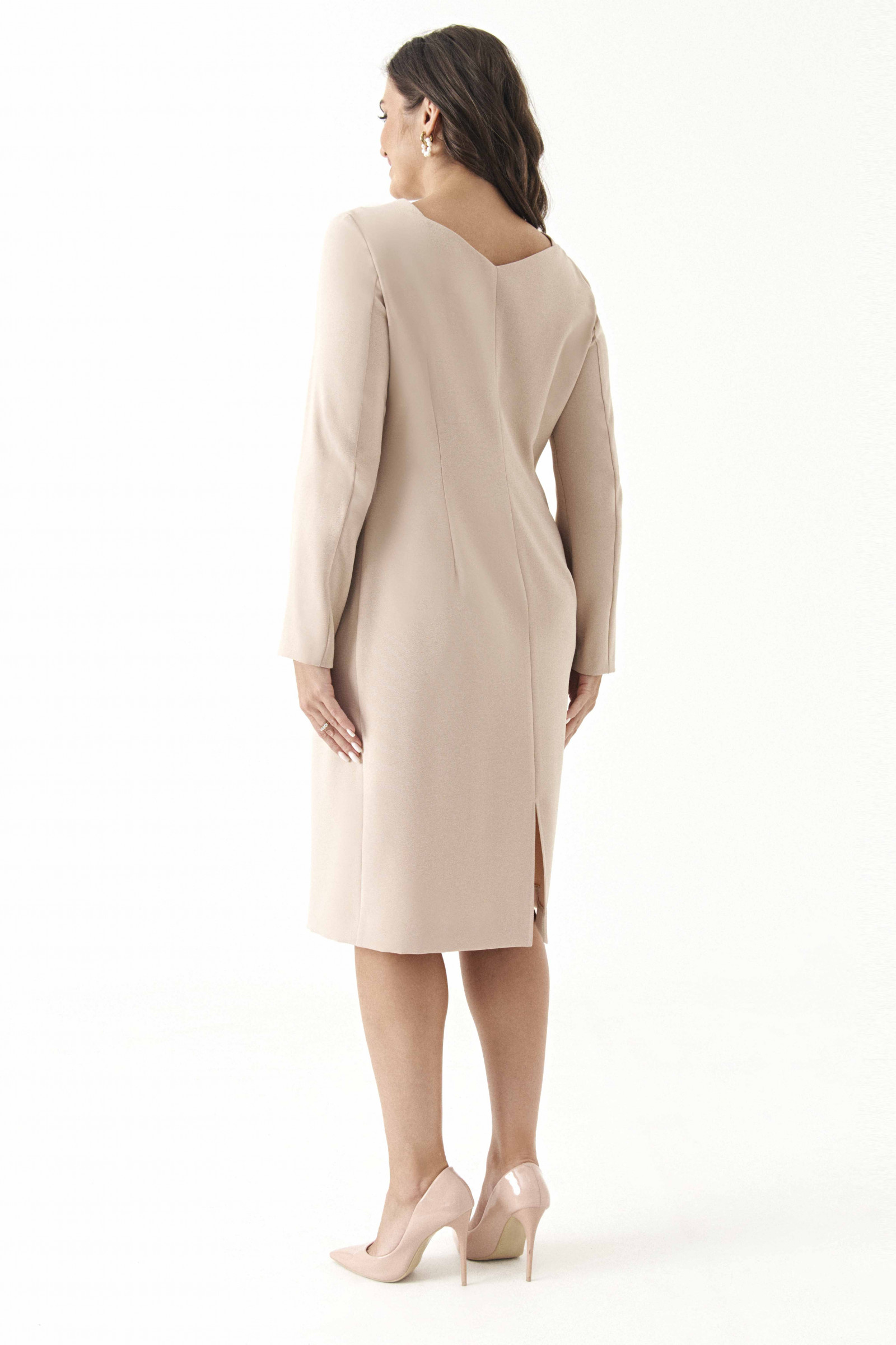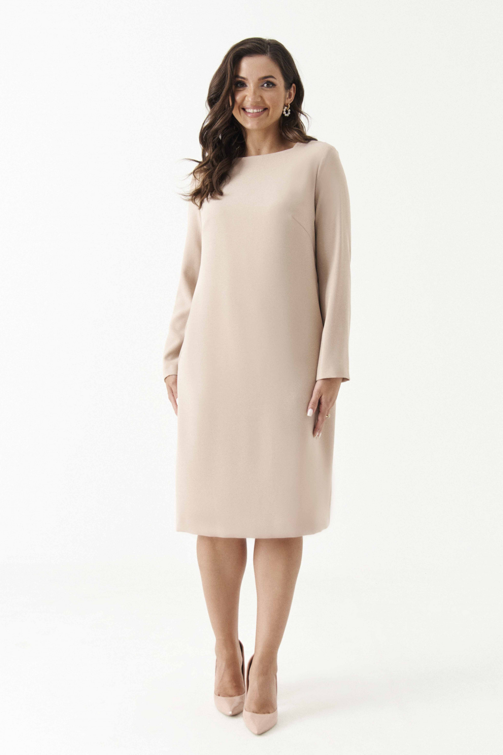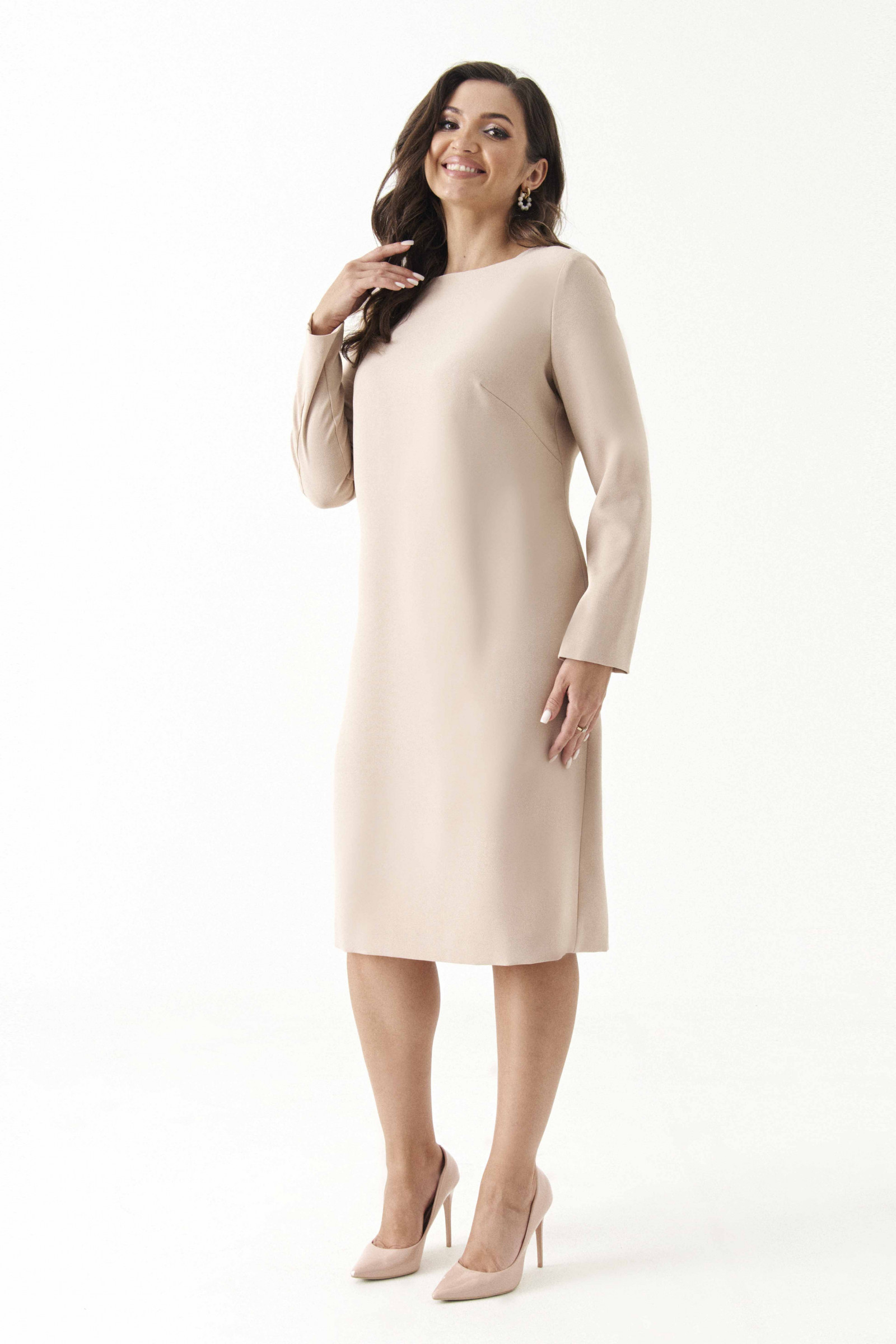 Платье из поливискозной ткани прямого силуэта для повседневной носки. Перед имеет нагрудные вытачки. Спинка с застежкой-молнией в среднем шве. Горловина обработана обтачкой. Рукава втачные длинные. Длина изделия чуть ниже колена. Красивое и нежное платье, которое обязательно покорит вас совей практичностью и комфортом.