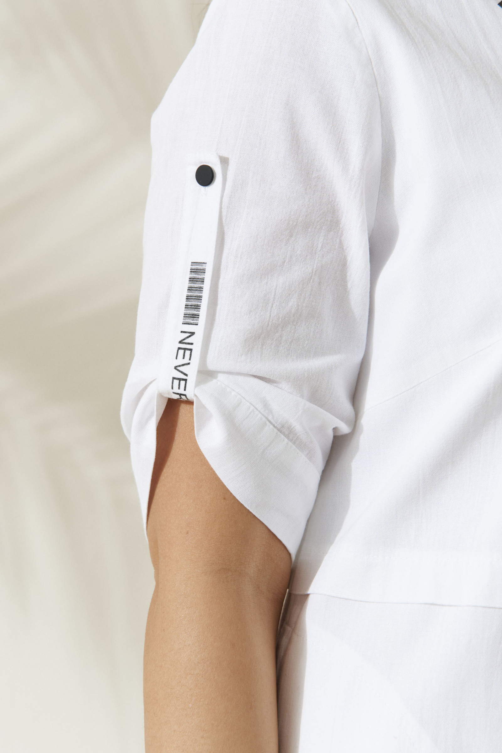 Платье повседневное женское с завышенной линией талии украшено асимметричными декоративными подрезами. Легкое платье с боковыми карманами на хлопковой подкладке украшено печатными черными надписями. Верх с круглым вырезом горловины и короткими рукавами с декоративной патой, низ с аккуратным швом. Вы можете недорого купить платье из хлопка для повседневной носки и стильных образов."