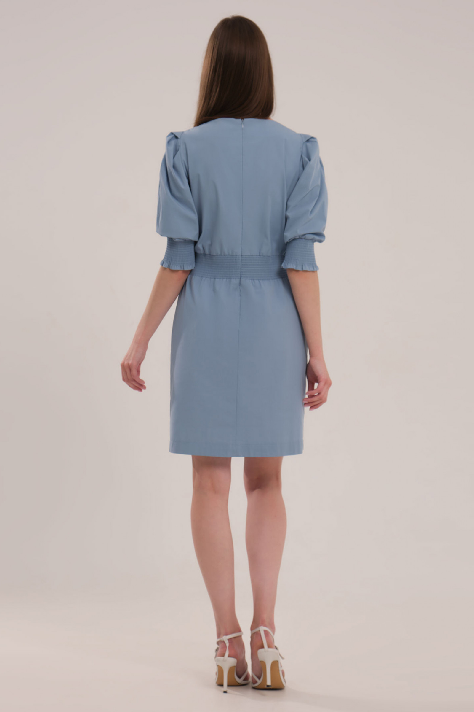 Стильное платье полуприлегающего силуэта, срезинкой на поясе.. Рукава имеют резинку, рукава фонарики. Отличный вариант для торжества и на каждый день. Элегантный образ- классика всегда и везде, изящество, неповторимый шарм.