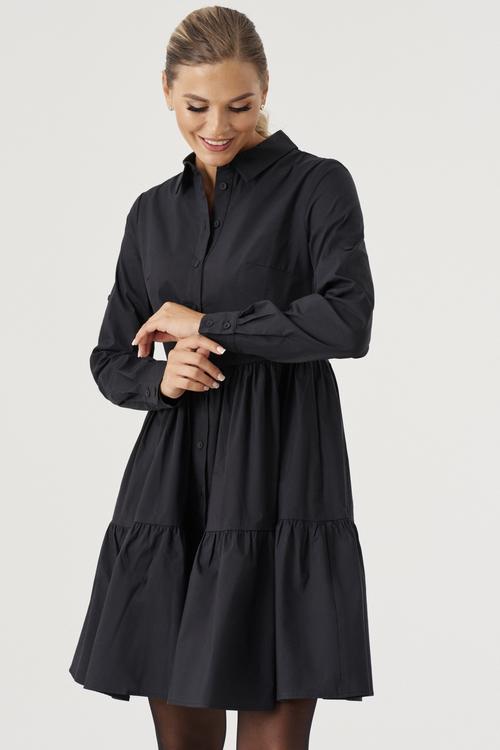 Романтичное платье, из хлопковой ткани, создаст стильный, свободный образ. Платье с воротником , с центральной планкой на петли пуговицы, с кокеткой , с горизонтальными подрезами и сборкой . Спинка с кокеткой , с отрезными воланами. Отличный вариант для выхода в свет и на отдых. Легкость, романтизм, грация-все это свойственно девушке, стоит ей лишь надеть это платье.