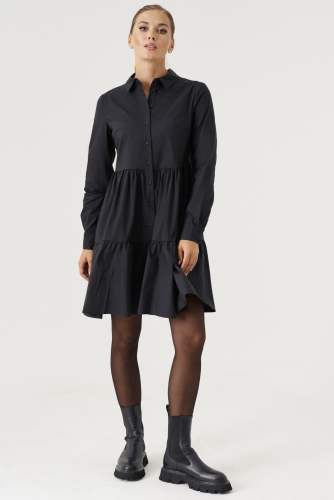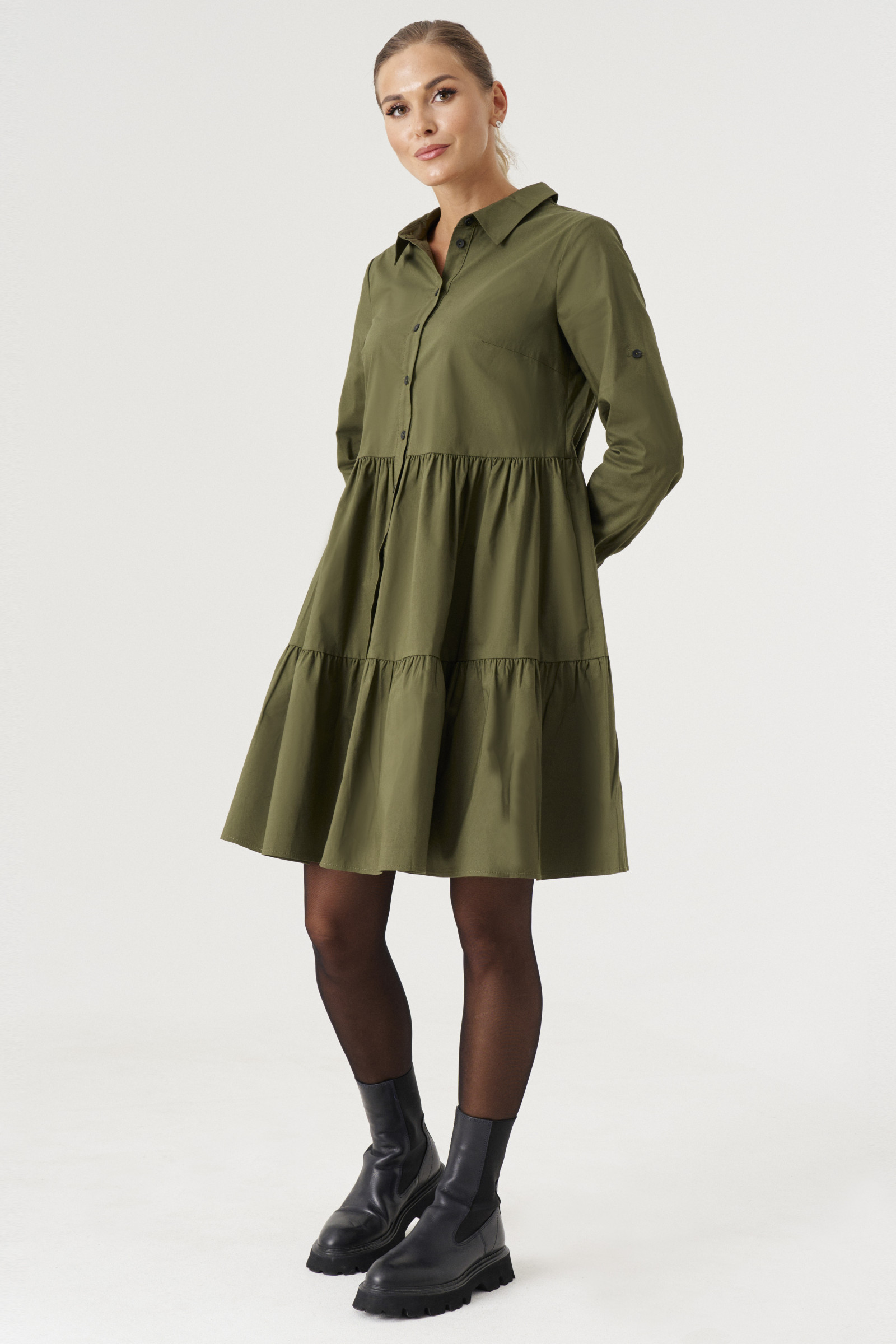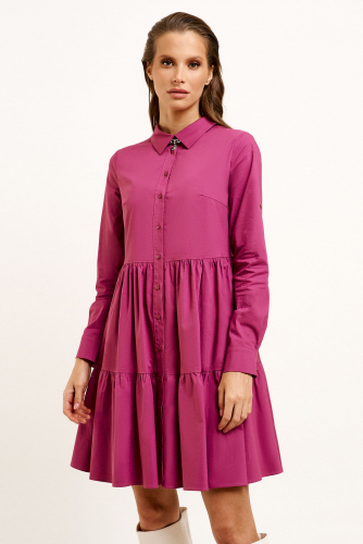 Романтичное платье, из хлопковой ткани, создаст стильный, свободный образ. Платье с воротником , с центральной планкой на петли пуговицы, с кокеткой , с горизонтальными подрезами и сборкой . Спинка с кокеткой , с отрезными воланами. Отличный вариант для выхода в свет и на отдых. Легкость, романтизм, грация-все это свойственно девушке, стоит ей лишь надеть это платье.
