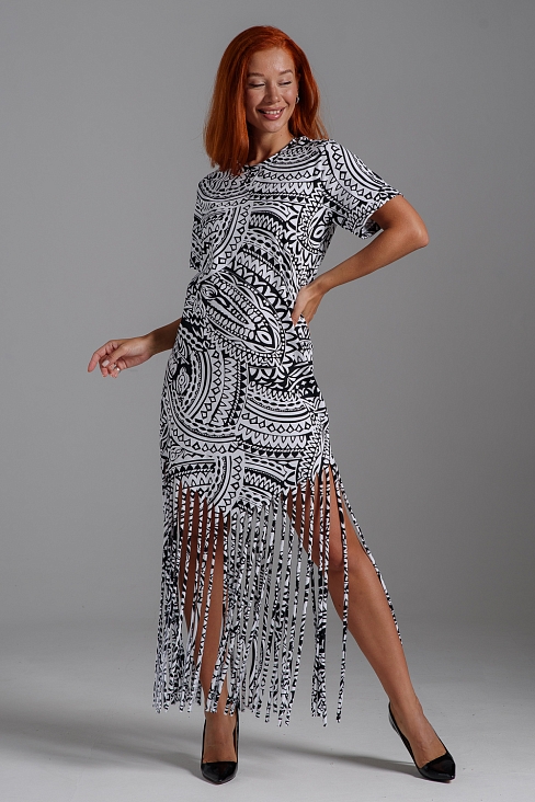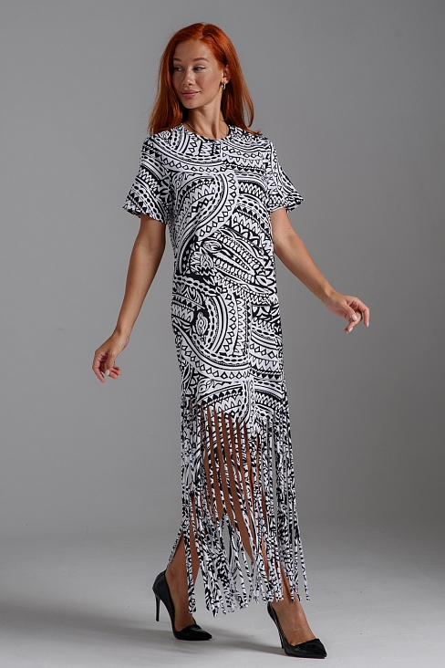 Платье женское 7480 / орнамент черный на белом