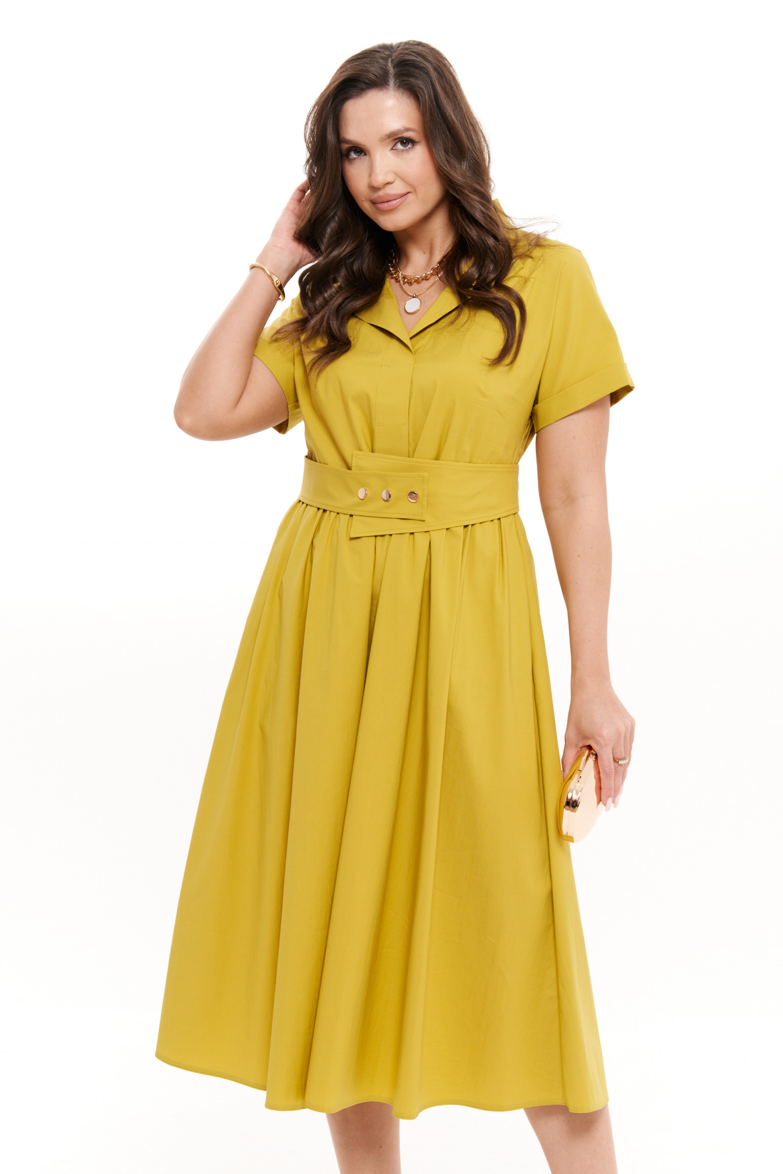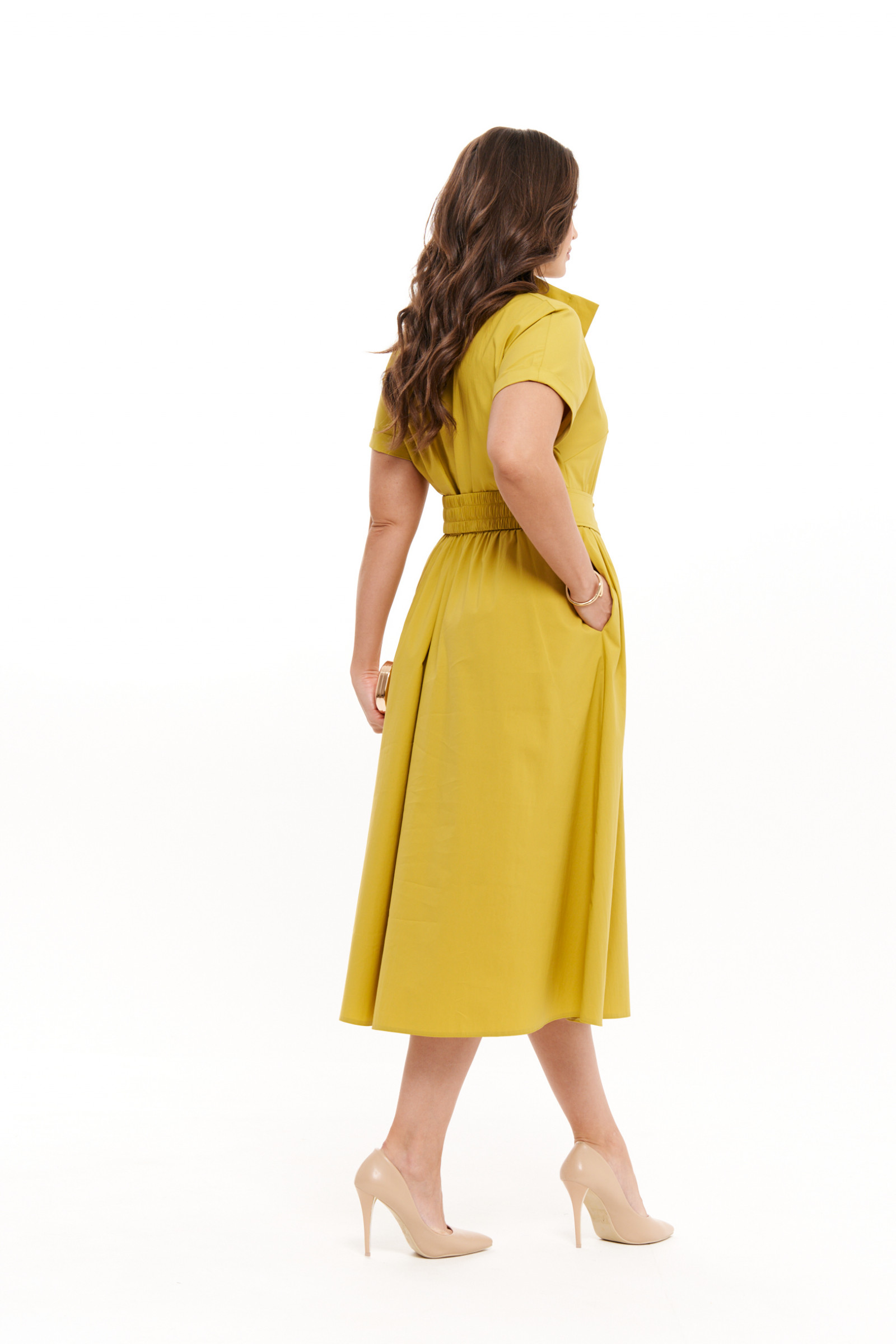 Платье женское из смесовой ткани для повседневной носки. Платье, расширенное к низу, а также отрезное по линии талии и имеет сборку. Перед имеет две нагрудные вытачки. В боковом шве имеются потайные прорезные карманы. Горловина обработана втачной планкой и стойкой. Рукава цельнокроеные, низ рукава обработан отлетной манжетой, длинна рукава чуть выше локтя. Длинна платья макси. Для придания формы в области талии имеется пояс из основной ткани с застежкой на кнопки. В платье имеются по планке декоративные закрепки. Платье элегантного василькового цвета, в котором вы будете выглядеть очень привлекательно. За счет большого содержания хлопка в платье, ваша кожа будет чувствовать себя комфортно. Красивое и элегантное платье в котором вы будете выглядеть неотразимо.