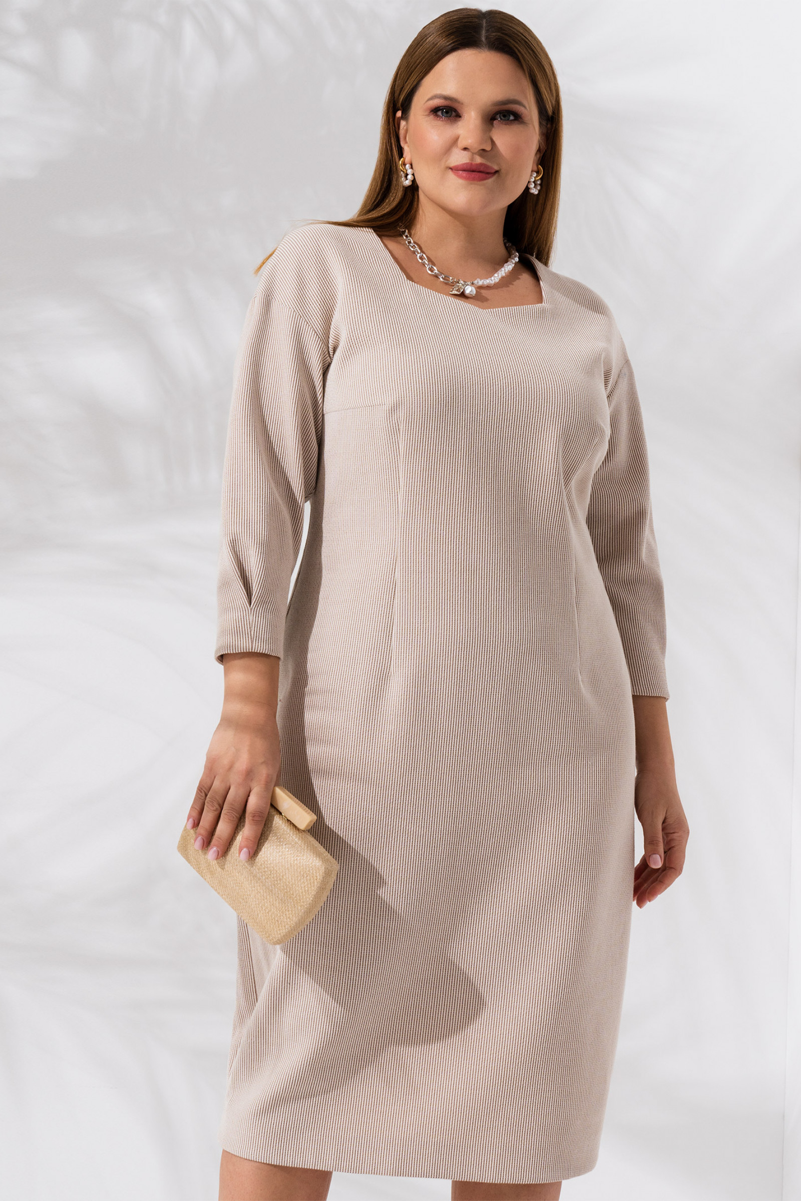 Летнее платье миди – оптимальный выбор для любых случаев и ситуаций. С ним вы создадите элегантный образ для офиса, деловой встречи. Классическое платье большого размера уместно надеть на мероприятие, в гости, на корпоратив. Красивая модель подойдет в качестве вечернего наряда. Приталенное платье из хлопкового трикотажа деликатно облегает силуэт, не обтягивая его. Спущенная линия плеча и рукав ¾ с небольшими складками смягчают контуры тела, придают им мягкость и плавность. Вырез горловины в форме пятиугольника акцентирует внимание на верхней части туловища, отвлекая внимание от живота и бедер. Выбирайте женское платье подходящего размера и заказывайте на выгодных условиях.