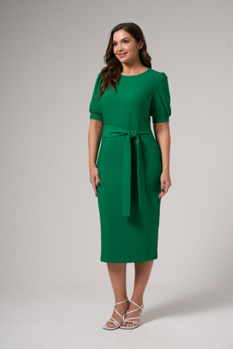 Строгое женское платье станет вашим помощником в формировании стильных образов. Трикотажное платье ниже колен прекрасно садится по фигуре, а благодаря объемному поясу-банту подчеркивает линию талии. Приятный к телу трикотаж не деформируется после стирки, быстро высыхает, не парит, обеспечивая комфорт даже в жаркую погоду. Объемные рукава отлично украшают облегающее платье и придаю ему романтичную ноту. Платье длины миди будет уместно на деловой встрече, торжественном мероприятии, на свидании, Дне Рождения, встрече с подружками. Оно хорошо сочетается с обувью на каблуке и аксессуарами благородных расцветок. Вы можете купить черное женское платье 42 и 44-50 размеров.