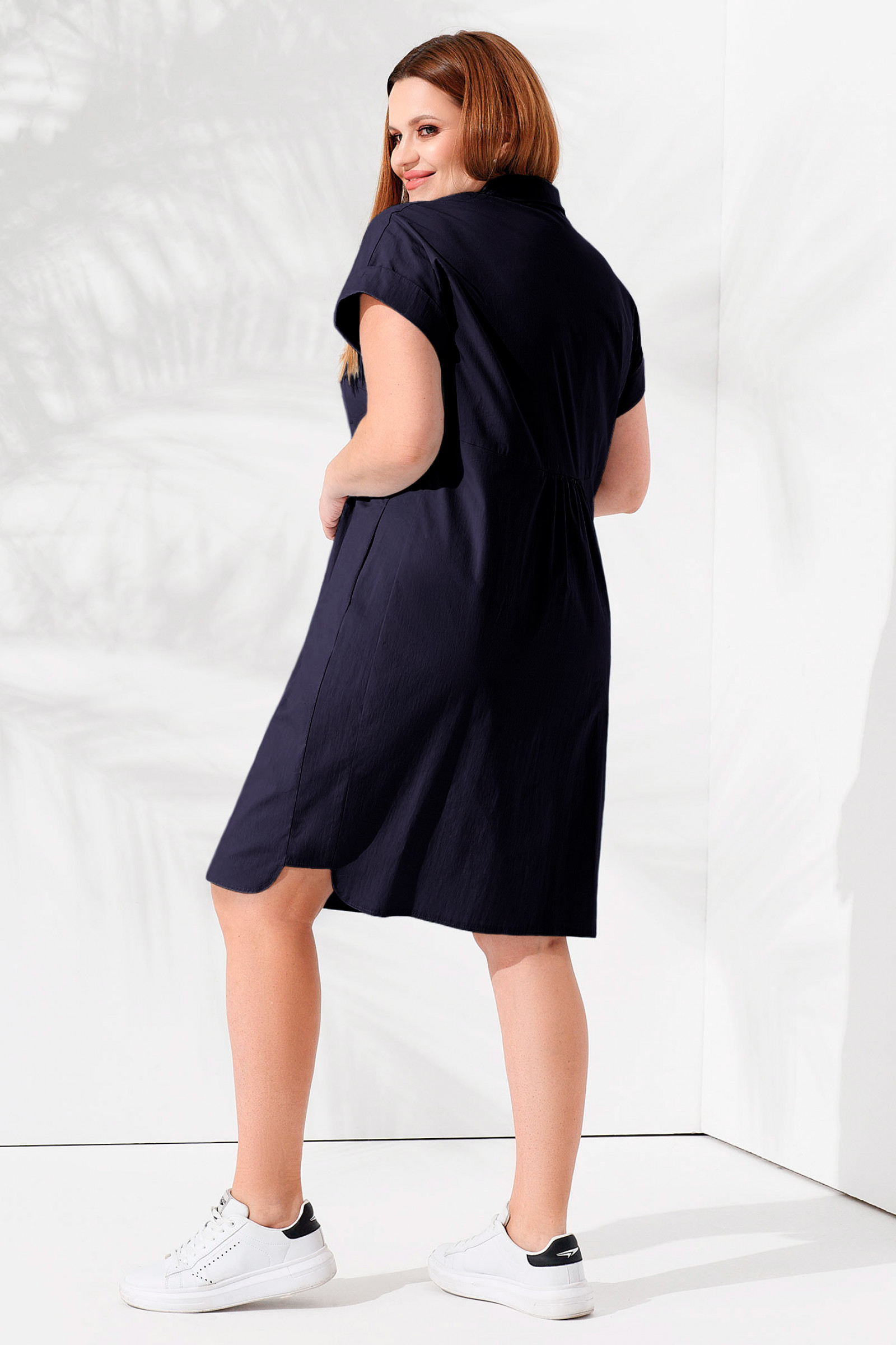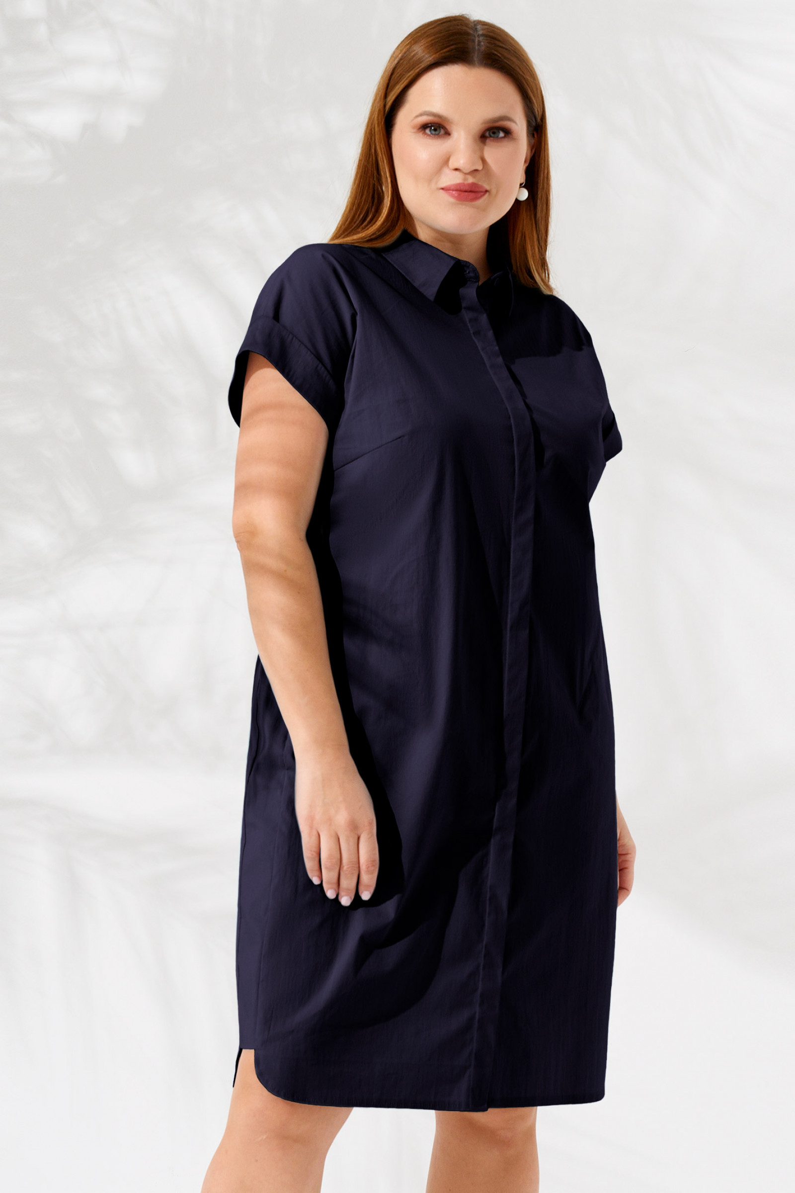 Женское платье рубашка – комфортная одежда для повседневной носки. В нем вы будете безупречно выглядеть на работе, прогулке, встрече с друзьями. Платье на пуговицах скроено с сорочечным воротником и короткими рукавами. Длина модели – до колена. Платье большого размера сшито в прямом силуэте, с нагрудными вытачками, благодаря чему идеально садится по фигуре и придает ей изящность. Вы можете заказать женское платье миди из трикотажа для создания стильных аутфитов. Оно отлично будет сочетаться с обувью в спортивном стиле и на танкетке.