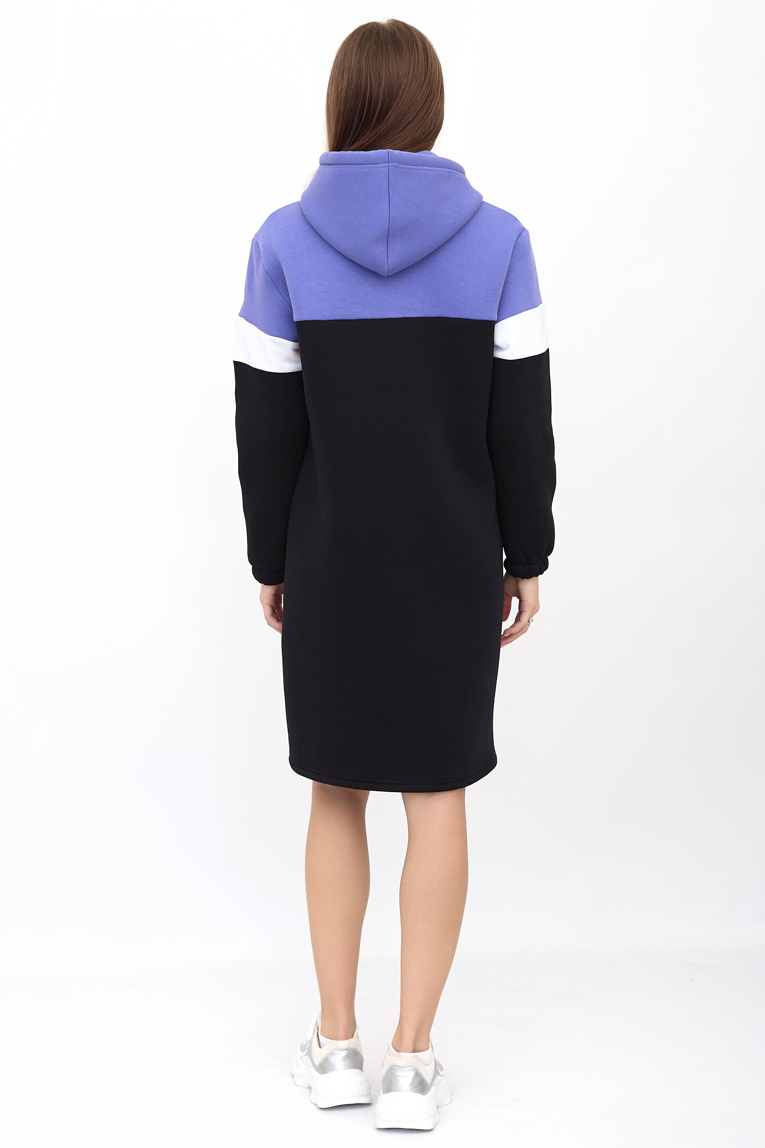 Утепленное спортивное платье с капюшоном. Красивое сочетание цвета и формы платья украсит любую девушку. Стильный образ любой девушке обеспечен. Платье свободного кроя, легко садится на любой тип фигуры. Модно сочетать такое платье со спортивной обувью.