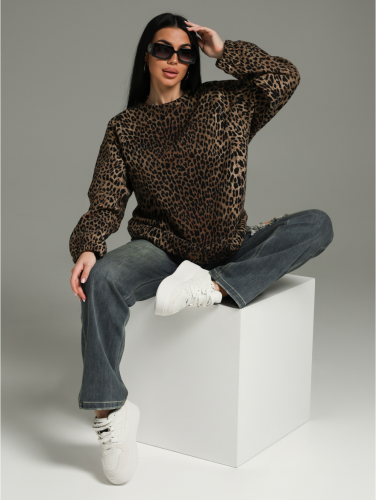 Изделие прямого силуэта со спущенной линией плеча и длинным рукавом, что делает его модным и современным.