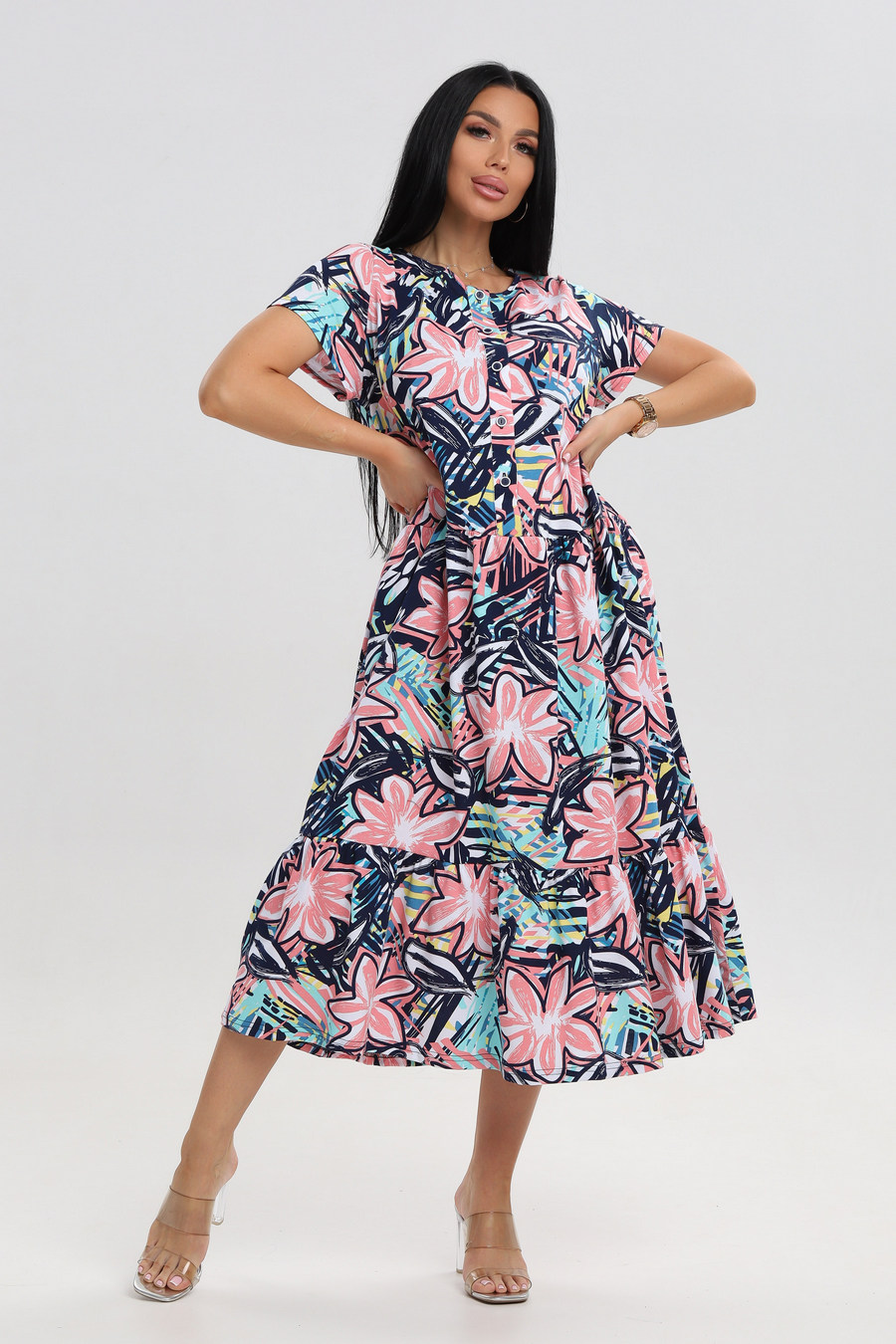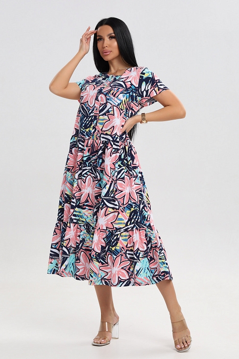 Платье женское из кулирки Кармелита 2 розовый лепесток с изящным принтом станет идеальным выбором для жаркого сезона. Оно прекрасно подойдет девушкам больших размеров благодаря свободному крою, который обеспечивает комфорт и свободу движений. Выполненное из 100% хлопка, оно приятно к телу и позволяет коже дышать даже в самые теплые дни. Универсальная одежда отлично смотрится как в повседневных образах, так и в нарядных ансамблях. Платье подойдет для прогулки, отдыха на пляже или домашнего времяпрепровождения. В нем можно отправиться на мероприятие или использовать его как удобный вариант для будущих мам — модель прекрасно сидит благодаря продуманному дизайну.