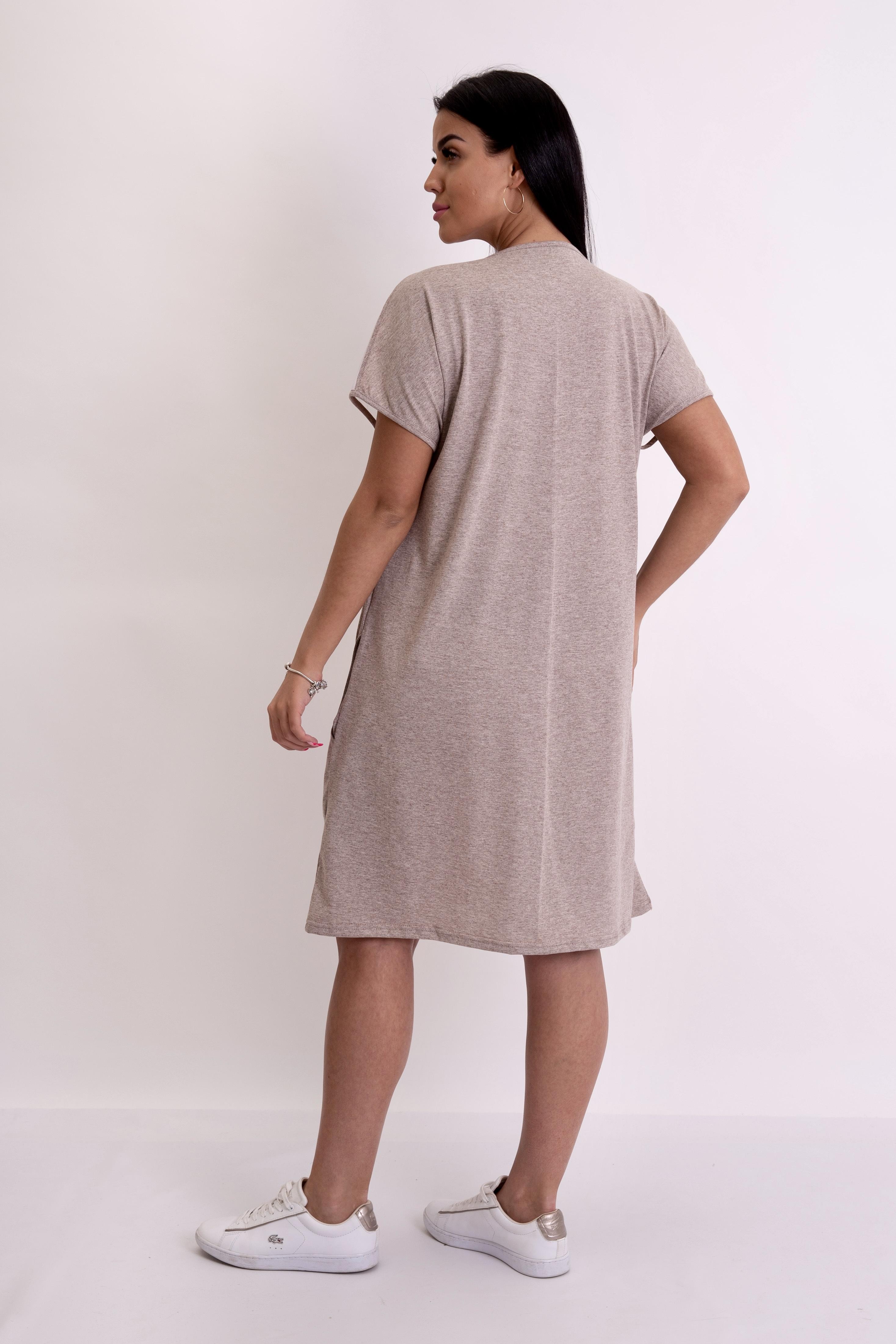 Оригинальное платье привлекает внимание своим дизайном. Платье свободного кроя, расширенное книзу. Рукав короткий спущенный, круглый вырез горловины, кокетка выполнена из сетки. Такая модель платья прекрасно подчёркивает достоинства и скрывает недостатки фигуры. Данное платье можно носить как с лёгкими босоножками, так и с кедами.
