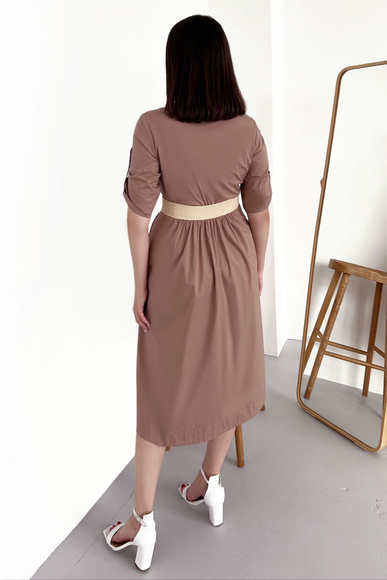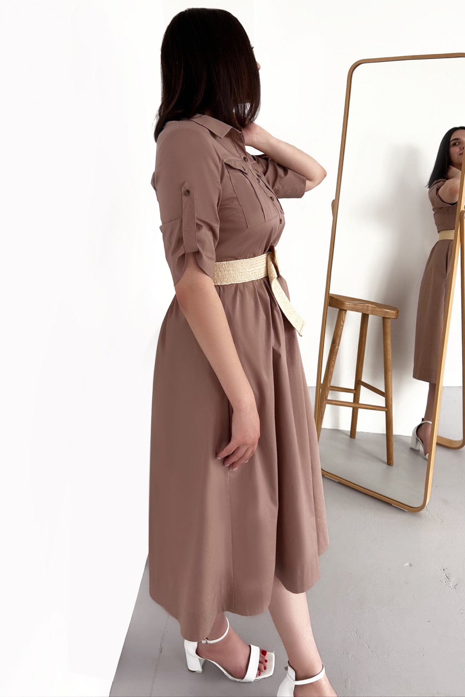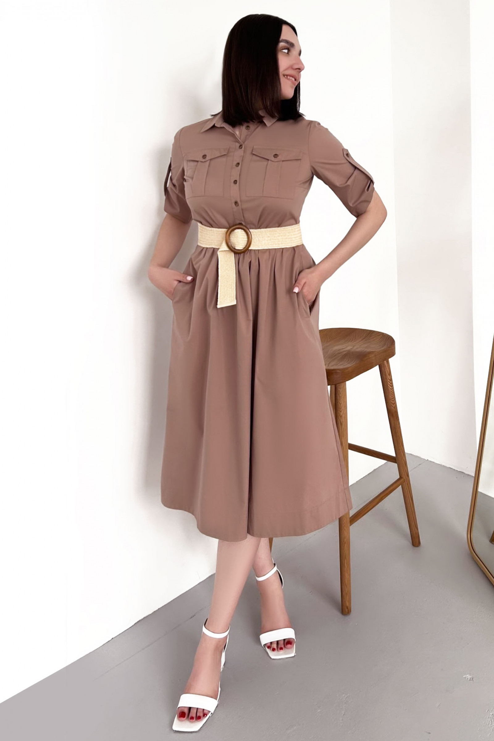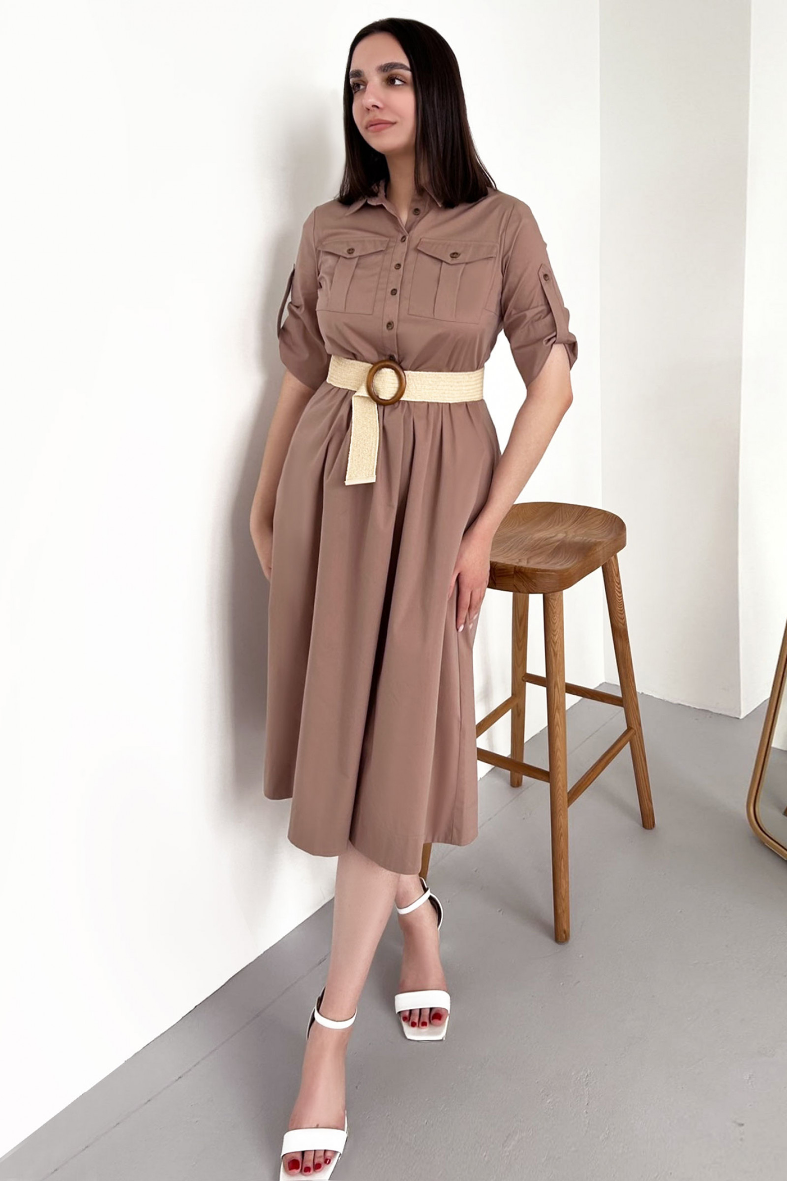 Платье миди – модная модель сезона, которая вашу фигуру стройнее, благодаря приталенному силуэту и ремешку. Платье с воротником рубашечного типа, нагрудными и прорезными боковыми карманами смотрится стильно, лаконично. Рукава с манжетами и патами открывают изящные линии рук. Платье рубашка из хлопкового полотна – мягкое, приятное на ощупь. Оно отлично отводит влагу, пропускает воздух, не сминается. Вы можете купить женское платье в комплекте с красивым съемным декоративным поясом.