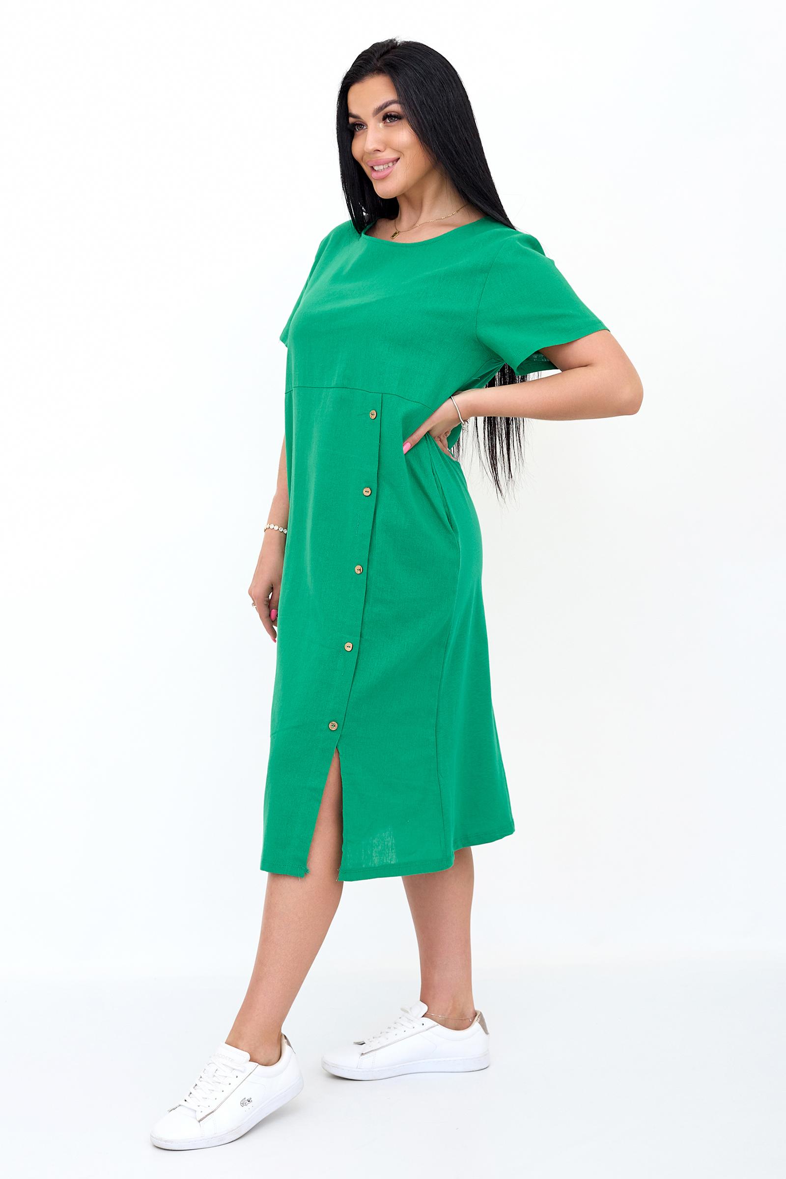 Стильное платье Виктория сделает Ваш образ очаровательным и элегантным. Короткие рукава, округлый вырез горловины, длина чуть ниже колена, удобный невысокий разрез позволяет комфортно ходить. Платье с одной стороны украшено пуговицами, что придает уникальность и изысканность модели. По бокам есть удобные кармашки. Отлично подходит для прогулок, отпуска, на работу или просто в гости.