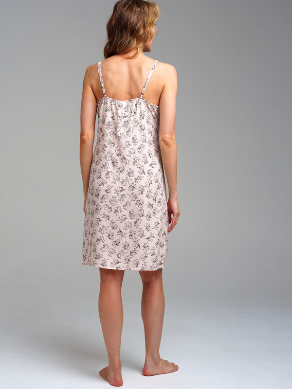 Ночная женская сорочка А-силуэта из 100% вискозы. Легкий и приятный к тему материал. Регулируемые бретели. По низу изделия кружево.