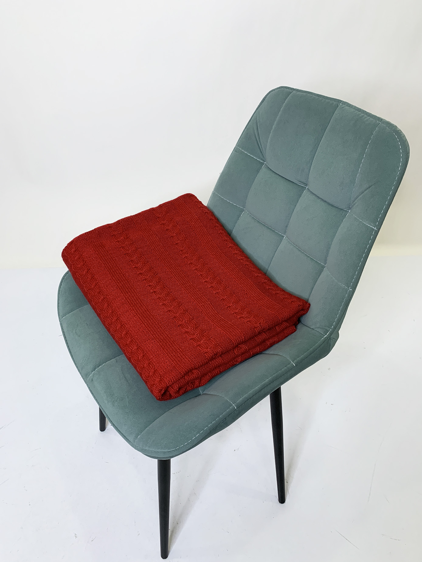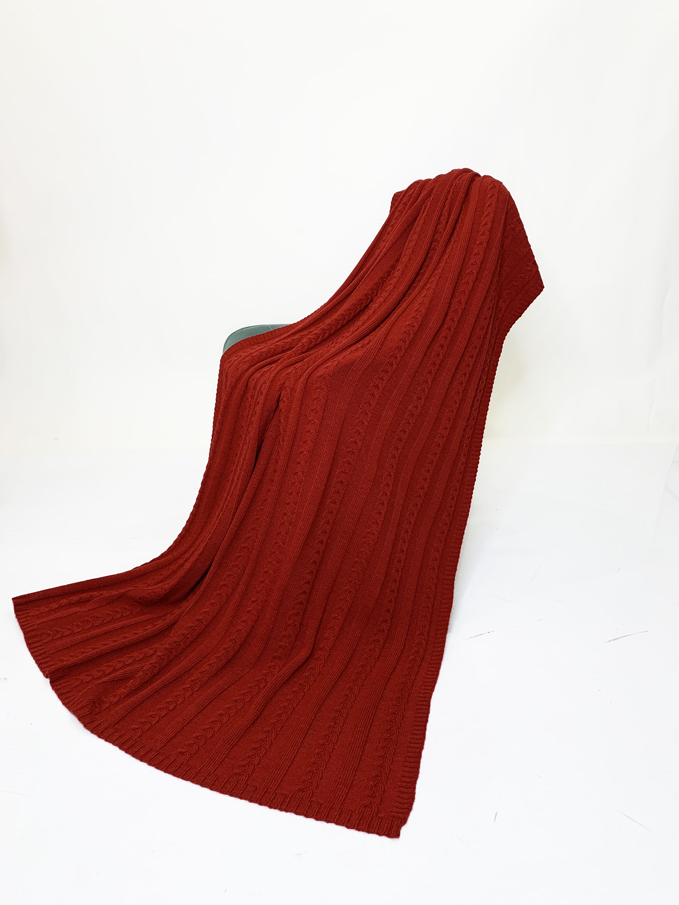 Классический вязанный плед с фактурной вязкой «косичка». Края пледа связаны резинкой, которая отлично держит форму. Этот мягкий и уютный плед согреет вас в прохладную погоду. красный