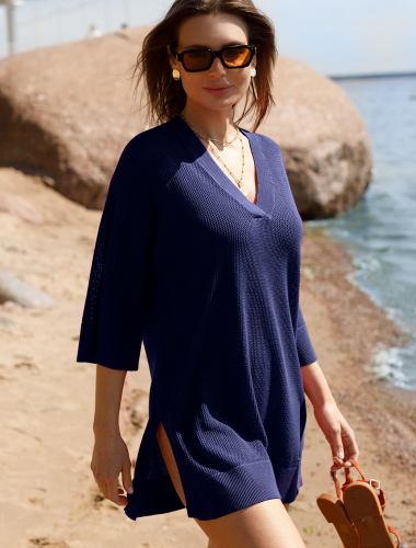 Пляжная туника полупрозрачной вязки из хлопка с вискозой