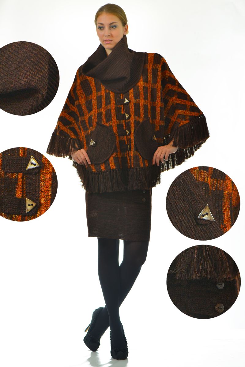 Описание: Пончо без подкладки, с карманами, съемный высокий воротник, трикотаж