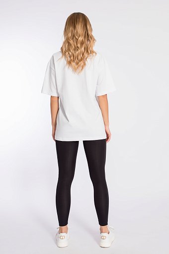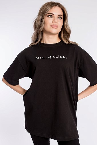 Футболка оверсайз силуэта из однотонной кулирки, 100% хлопок. С коротким рукавом и круглым вырезом горловины. Спереди нанесён принт.
