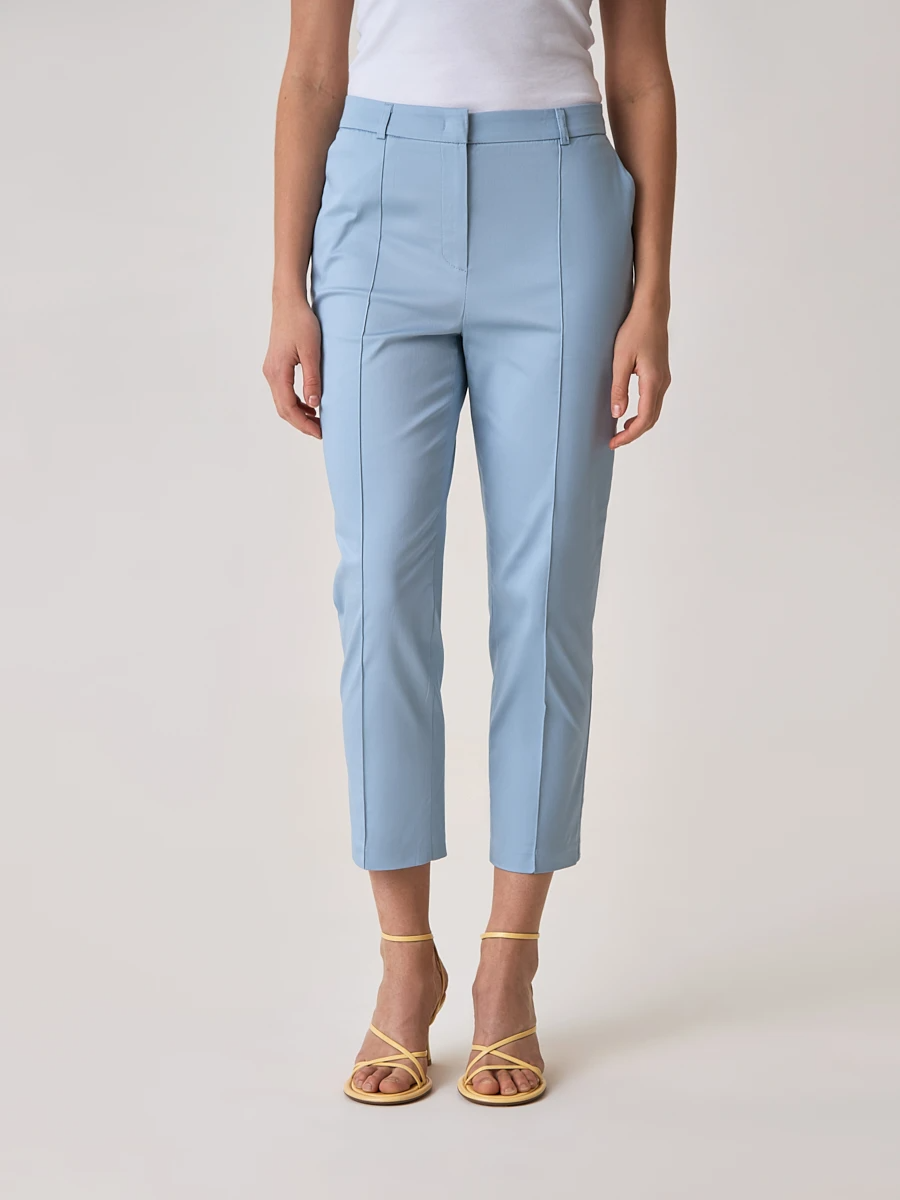 Брюки хорошие, плотный хлопок, простроченные впереди стрелки. Идут в размер, талия высокая, чуть короче остальных. Цвет как на фото. Рост 160, 44 размер
