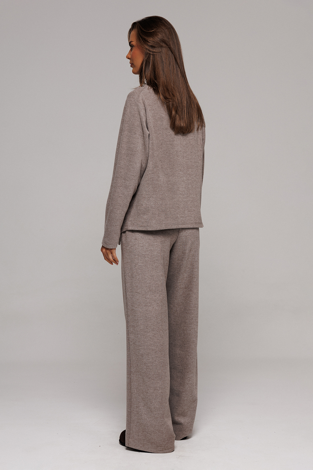 3201 60% вискоза, 35% ПЭ, 5% спандекс Брюки 3300 42-54 170 капучино Брюки из трикотажного полотна с велюровым эффектом прямого силуэта на притачном, отстроченном поясе со вставленной в него резинкой. Полочка с защипами от пояса до низа брюк. Брюки с карманами в боковых швах.