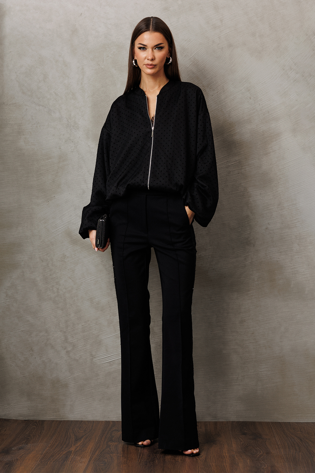 3204 100% ПЭ Жакет 4500 42-54 170 черный Жакет из атласа из фатина прямого силуэта со спущенной линией плеча. Рукав втачной одношовнный внизу на резинке. Полочка с центральной застежкой на тесьму-молнию. Полочка и спинка внизу на резинке. По горловине воротник-стойка. Жакет на подкладке.