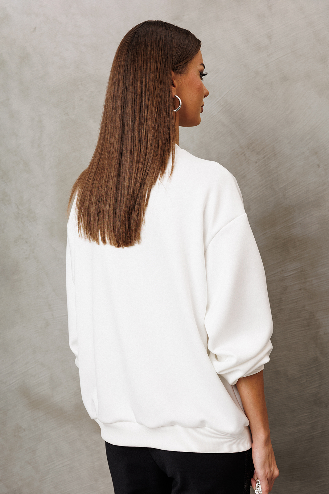 3235 54% ПЭ, 40% вискоза, 6% спандэкс Джемпер 3600 42-54 170 молочный Джемпер из технологичного трикотажного полотна с эффектом peach. Прямого силуэта с втачным рукавом и спущенной линией плеча, с манжетой из отделочной ткани по низу рукава. По переду имитация корсета из пайеток. По горловине и низу изделия притачная планка из отделочной ткани.
