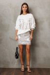 3239 100% ПЭ Юбка 3300 42-48 170 серебряный Юбка А-образного силуэта из пайеток, вверху на обтачке. С застежкой в боковом шве на металлическую тесьму-молнию. По задней половинке юбки вытачка. Юбка без на подкладке.